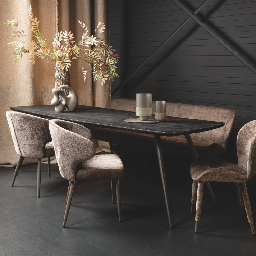 Az Ares szék egy kényelmes és modern megjelenésű ülőbútor, mely finom tapintású velúr szövettel van kárpitozva. A vékony fém lábak trendi hatást kölcsönöznek, és kiemelik a széket. A komfortot a vastag párnázat, a félkör íves, karfákba nyúló háttámla garantálja. Az Ares étkezőszék sötétbarna, és bézs színekben érhető el.