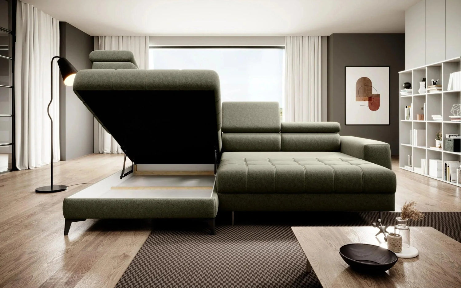 Az Astola egy elegáns és funkcionális sarokkanapé, mely tökéletes kiegészítője lehet bármely nappalinak. Egyszerű vonalvezetésének és finom varrásainak köszönhetően a bútorok rendkívül lenyűgözőek. Mozgatható fejtámlákkal van felszerelve, az alvás funkciójának köszönhetően pedig tökéletes a nappali és éjszakai pihenéshez. Ágyneműtartóval, valamint a kartámaszban található indukciós töltővel is rendelkezik.