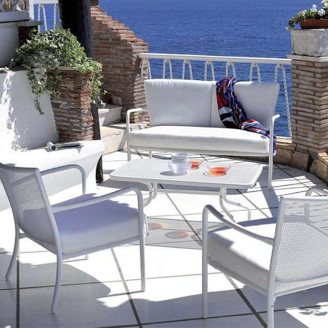 Az acélból készült Athena kollekció klasszikus dizájnja a barátságos és stílusos légkör érdekében készült. A 2 személyes szőtt fémlemezei eleganciát és egyéniséget kölcsönöznek ennek a bútordarabnak. Az Athena kanapéhoz hozzáillő, vastag párnázat is rendelhető.