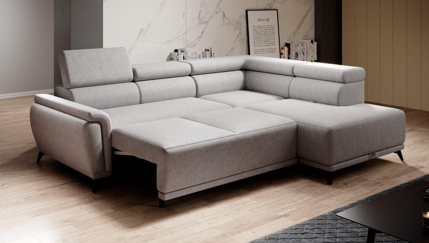 Az Atlanta egy modern és funkcionális sarokkanapé, mely tökéletes kiegészítője lehet bármely nappalinak. Egyszerű vonalvezetésének és finom varrásainak köszönhetően a bútorok rendkívül stílusosak. Mozgatható fejtámlákkal van felszerelve, az alvás funkciójának köszönhetően pedig tökéletes éjszakai pihenéshez is. Ágyneműtartóval is rendelkezik, így egyszerű tárolási lehetőséget nyújt a takarók és párnák számára.
