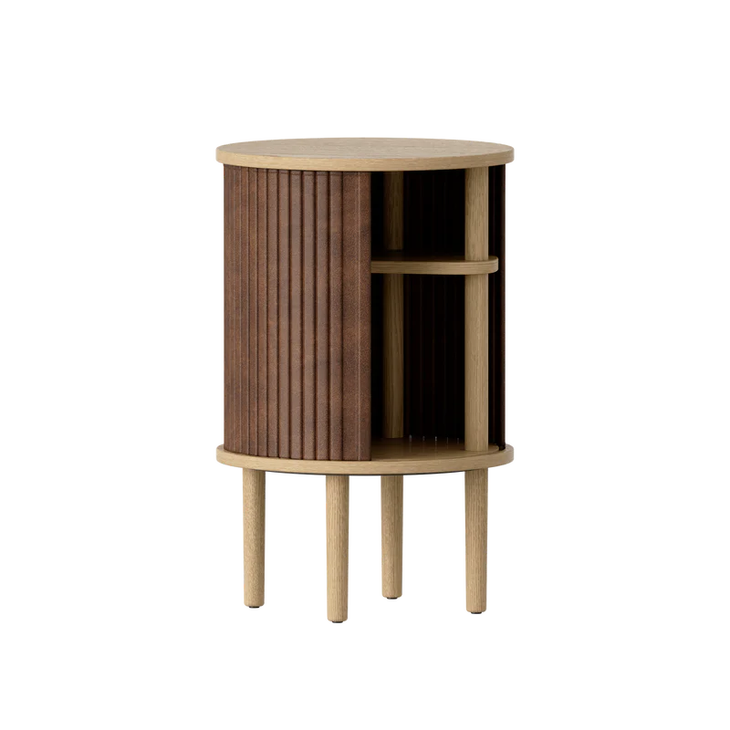 Az Audacious éjjeliszekrény nagyon jól használható szállodai szobákban vagy akár egy kanapé mellett. Az asztal belsejében egy rejtett USB-hub található négy USB-csatlakozóval és egy micro-USB-vel, így az egész család egyszerre töltheti telefonjait és tabletjeit. Az éjjeliszekrény praktikus megoldás, tárolóhelyet biztosít az apróságok számára. Az Audacious belső polca speciálisan kialakított, kivágott résszel rendelkezik a magasabb tárgyak, például könyvek és magazinok számára. A tamburás ajtók cserélhetőek, ami azt jelenti, hogy könnyedén cserélheted őket és új életet adhatsz a dizájnnak anélkül, hogy teljesen új bútordarabot kellene vásárolnod, ezzel megkímélve a világ erőforrásait.