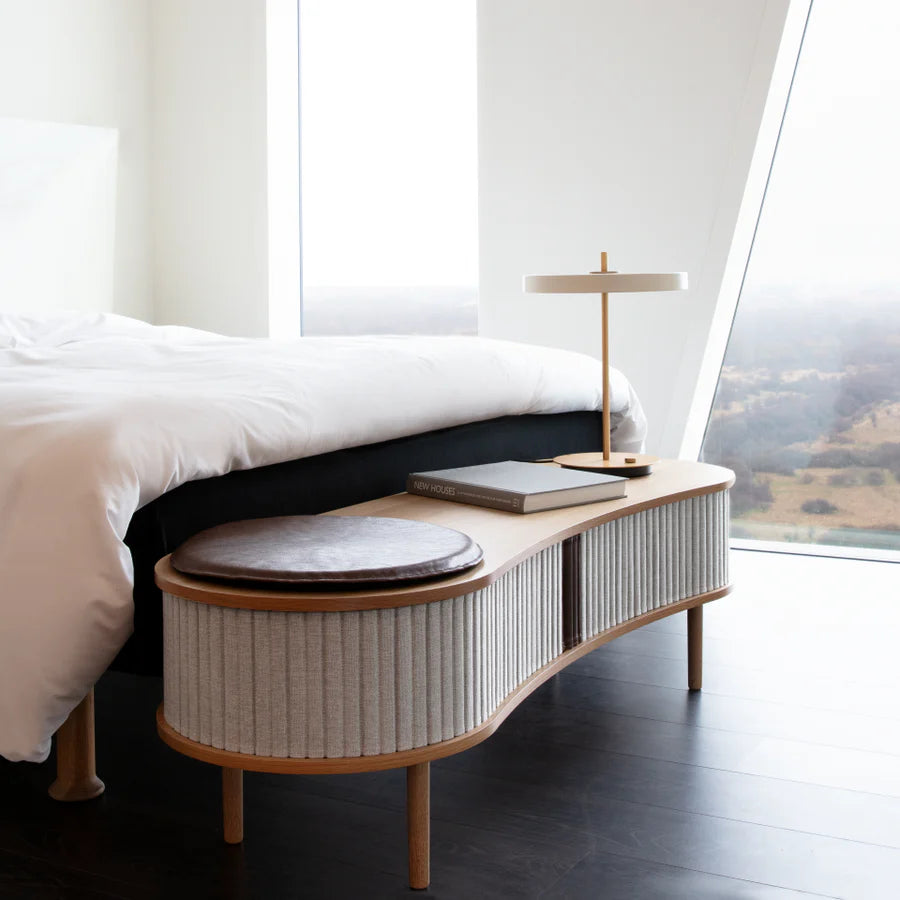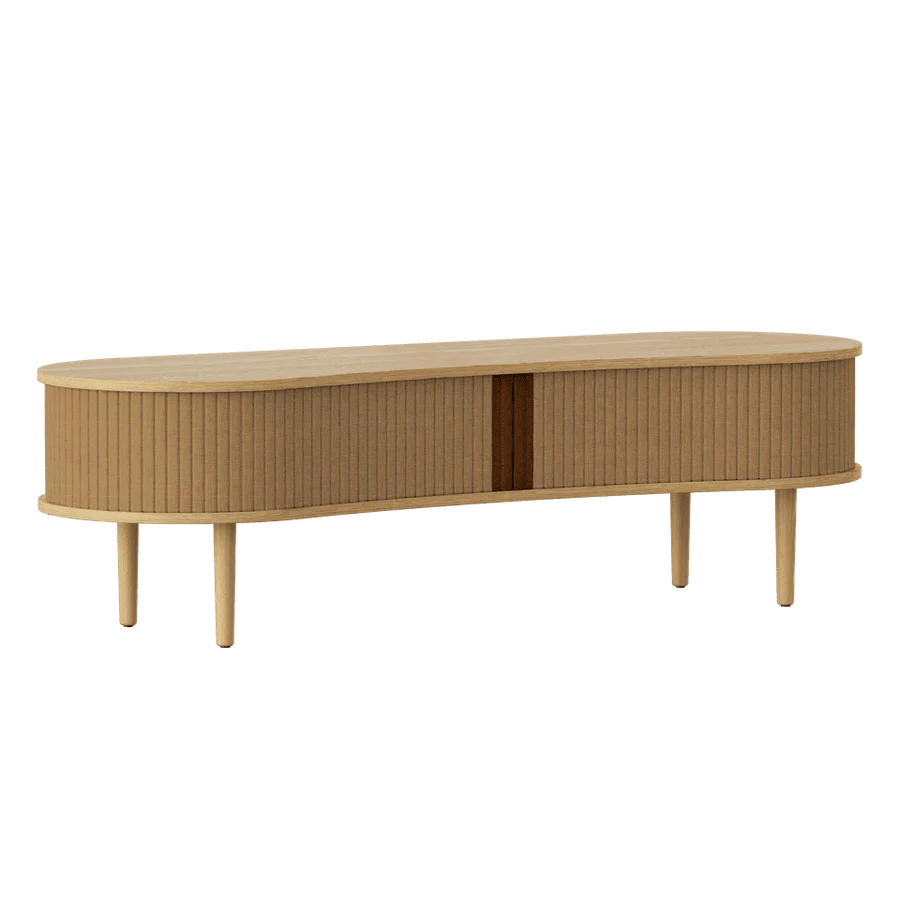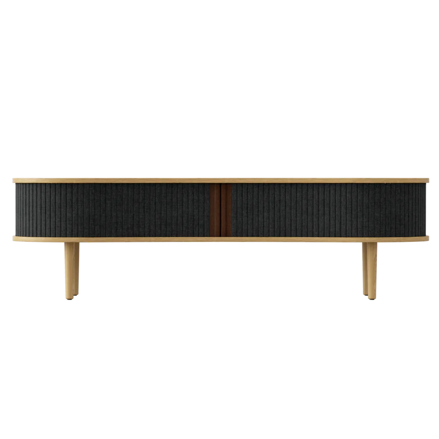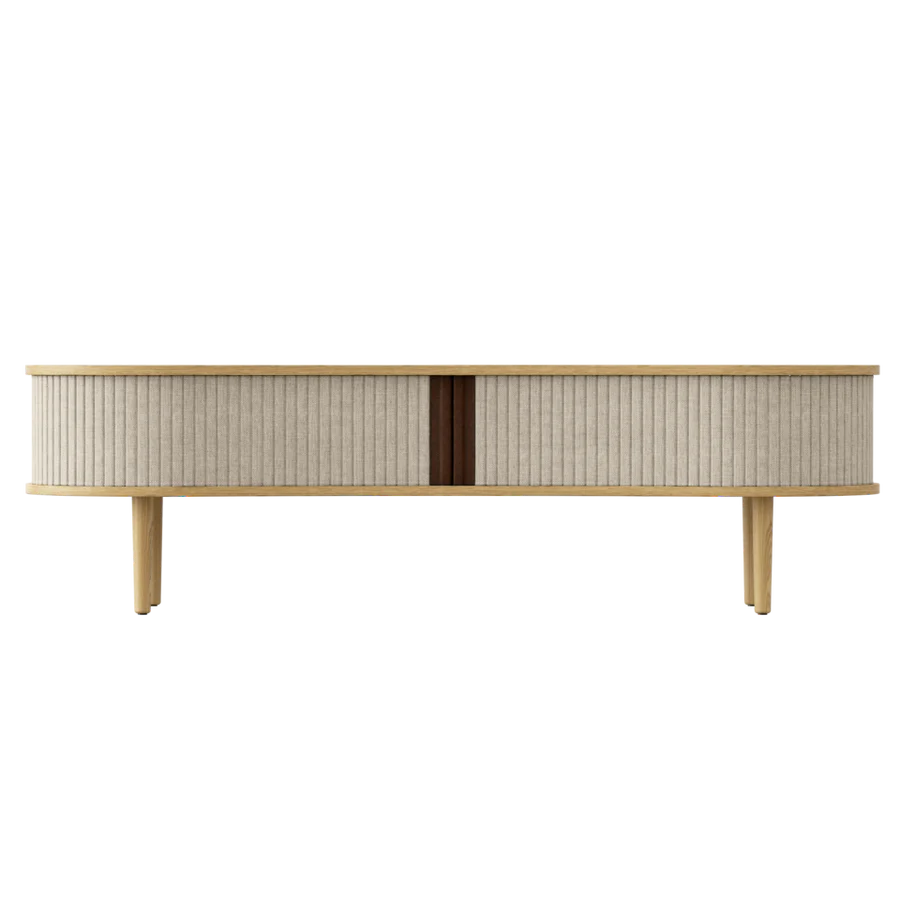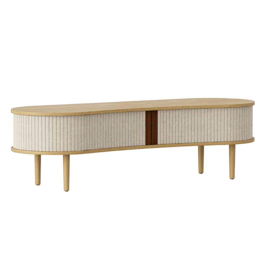 Többcélú pad ülőhelyként vagy TV szekrény, ez a sokoldalú Audacious dizájn bútor. A hátul található kábelkivezetéssel könnyen elrejtheted a kusza kábeleket. Az előszobában elhelyezve tárold az összes kültéri ruháját, cipődet miközben helyet is foglalhatsz. Tölgy, sötét tölgy és fekete tölgy színben kapható, tamburás ajtókkal, a 100%-ban újrahasznosított Horizons textil négy gondosan kiválasztott színében és két színben műbőrrel. A tamburás ajtók cserélhetők, ami azt jelenti, hogy könnyedén cserélheted is őket saját magad, és új életet adhatsz a dizájnnak anélkül, hogy teljesen új bútordarabot kellene vásárolnod, így megkímélve a világ erőforrásait.