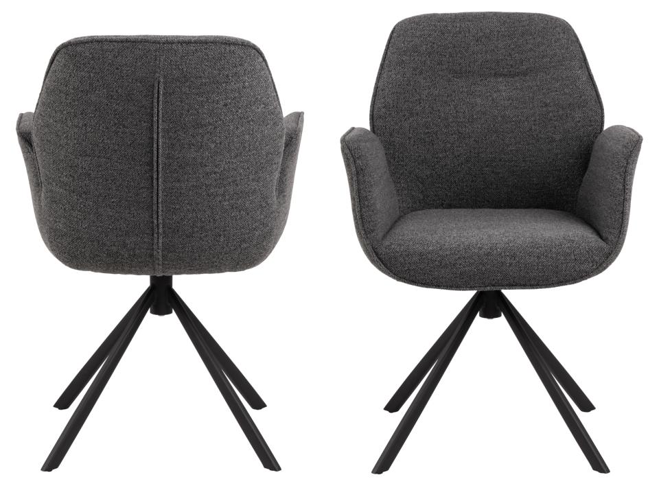 Jellegzetes sziluett és elegancia, ez jellemzi az Aura forgószéket, mely tökéletes minden modern otthonba. Az ülés bézs vagy sötétszürke bouclé anyaggal kárpitozott, amely strukturált, és finom megjelenést kölcsönöz a huzatnak. A stílus teljessé tétele érdekében a szék egy fekete, 4 ágú csillagos forgó fém alapon áll.