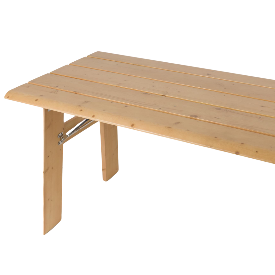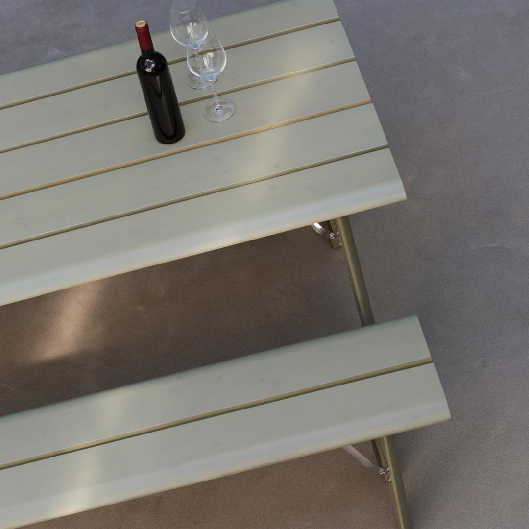 Az Avenue egy letisztult, minimalista stílusú, natúr vagy zsályazöld színű, fenyőfából készült összecsukható asztal, mely ideális méretű a kollekció padjához. Egyszerű és elegáns megjelenésének köszönhetően bármilyen kültéri környezetbe illeszkedik. Az anyaga miatt rendkívül tartós és hosszú élettartamú, így garantáltan sokáig szolgál majd. Összecsukható, így tárolása és használata rendkívül egyszerű. Kombináld az Avenue kollekció összecsukható padjával a teljes összkép érdekében. Szettben is megvásárolható.