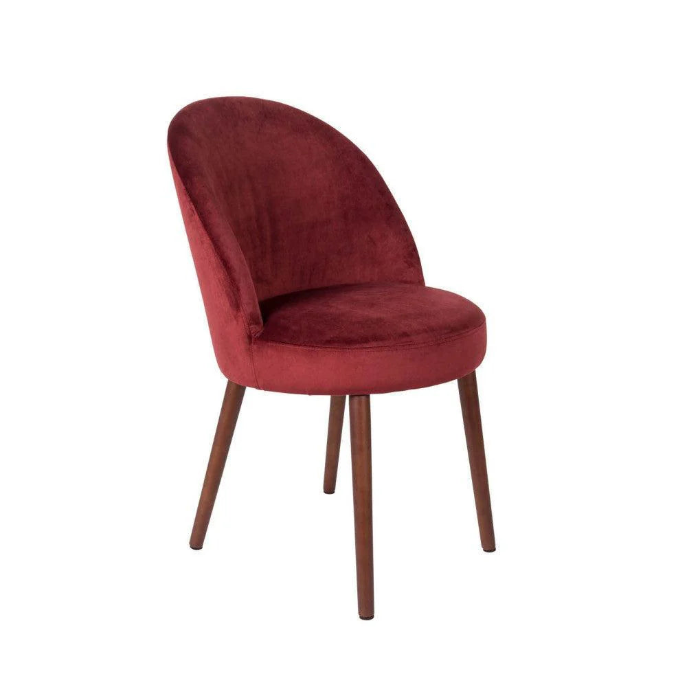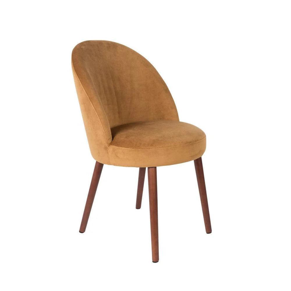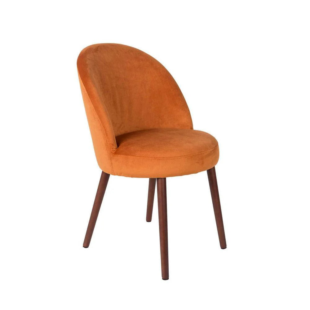 Az étkezőszék kárpitja luxus és stílusérzet sugárzását hordozza, hiszen 100% poliészter bársony anyagból készült, mely rendkívül elegáns megjelenést kölcsönöz neki. A lábak dió színű tömörfából készültek, ami melegséget és tartósságot biztosít az étkezőszéknek. Kapható hat különböző élénk színben.