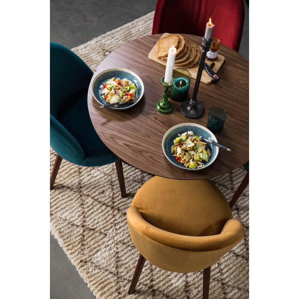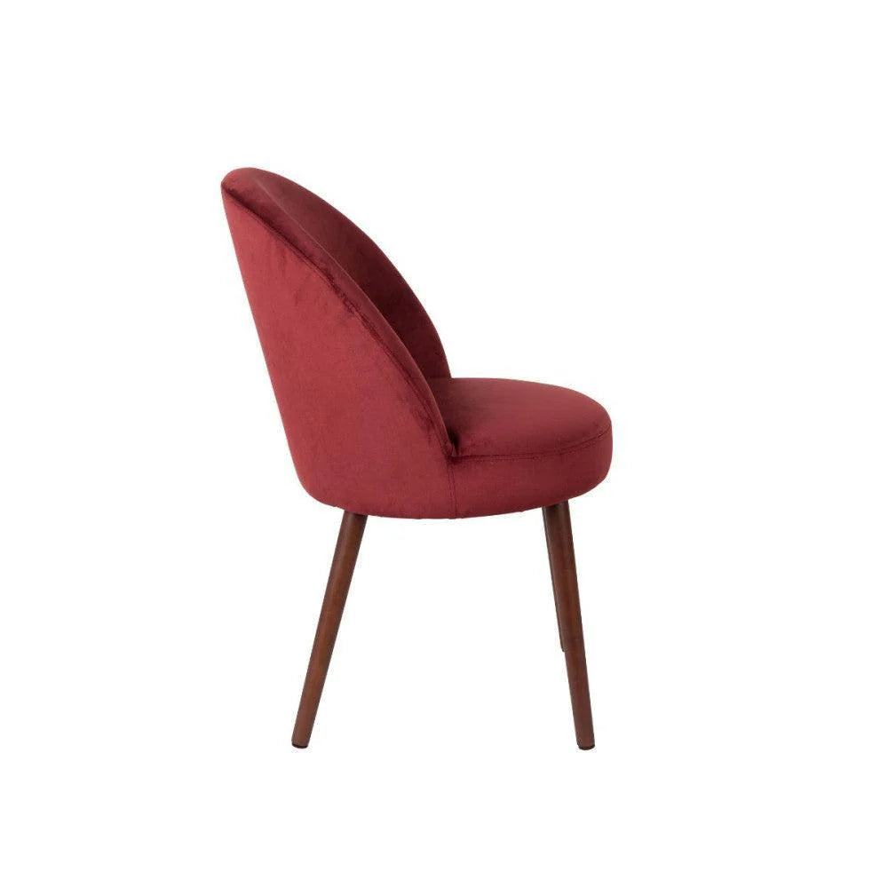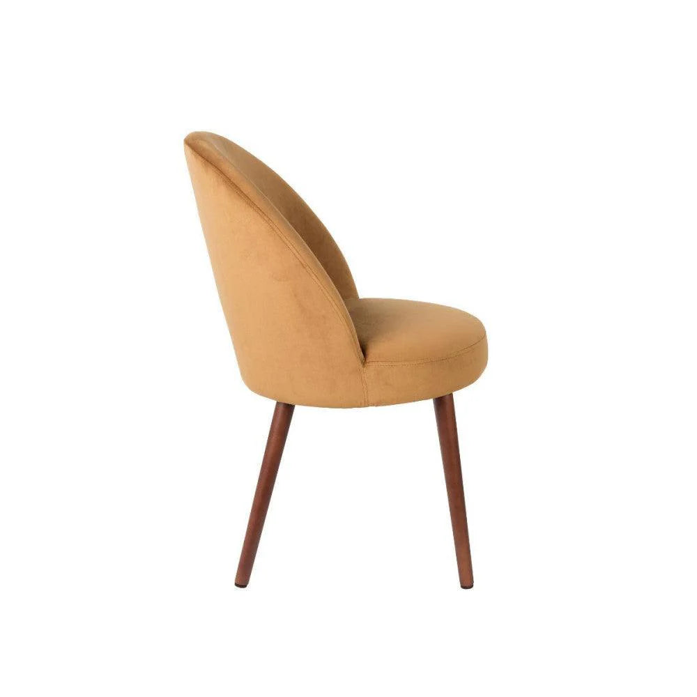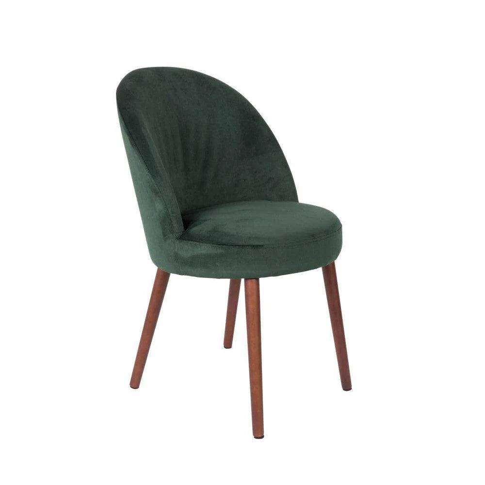 Az étkezőszék kárpitja luxus és stílusérzet sugárzását hordozza, hiszen 100% poliészter bársony anyagból készült, mely rendkívül elegáns megjelenést kölcsönöz neki. A lábak dió színű tömörfából készültek, ami melegséget és tartósságot biztosít az étkezőszéknek. Kapható hat különböző élénk színben.