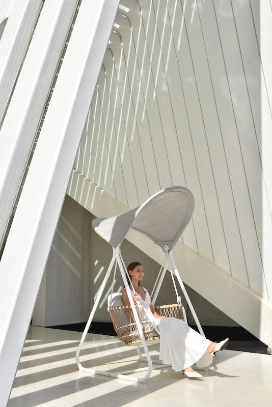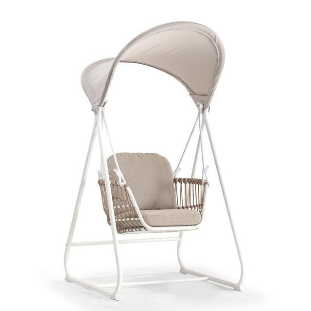 A Bari kerti függőfotel egy elegáns és kényelmes bútordarab, mely luxus hangulatot kölcsönöz a kertnek vagy terasznak. A fotel bézs, és fehér színe miatt könnyen illeszthető bármilyen stílusú kerti bútorokhoz. Ideális választás azoknak, akik szeretnék egy kicsit kényeztetni magukat a szabadban, relaxáláshoz vagy olvasáshoz. A kiváló minőségű anyagoknak köszönhetően, hosszú éveken át élvezheted a függőfotel kényelmét és szépségét.
