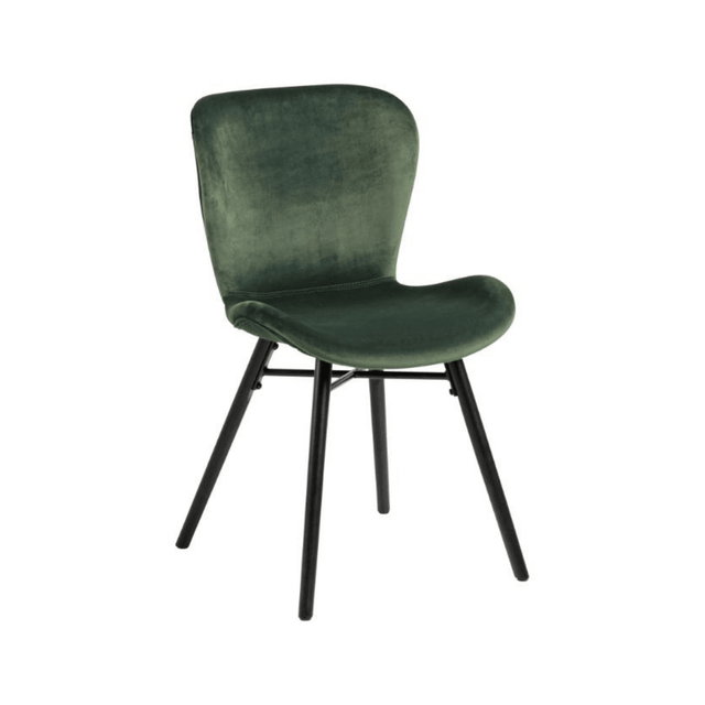 Az exkluzív, rendkívül sokoldalú Batilda szék minden étkezőt modern megjelenéssel varázsol el. Az ívelt háttámlával rendelkező ülés organikus formája támasztó és kényelmes ülésélményt kínál, míg a masszív talp stabilitást biztosít. A stílus és a kényelem tökéletes keveréke ez a sötétzöld bársony borítású szék.