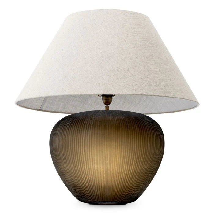 A feltűnő Bayly asztali lámpa a kézművesség és az időtálló design ünneplése. Üveg alja kézzel fújt technikával készül, kézzel vágott mintákkal. Minden darab egyedi, minden részletében a kézműves keze nyomát viseli. A lágy textúrájú, lenkeverékből készült árnyékolóval a tetején meleg, hangulatos fényt áraszt, amely eleganciát és hangulatot kölcsönöz minden belső térnek. Tökéletesen megállja a helyét dísztárgyként is konzolasztalon, kisasztalon vagy akár éjjeliszekrényen.