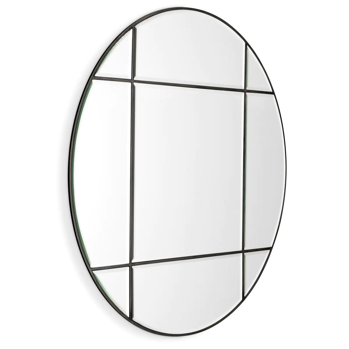 A Beaumont kerek fém tükör tökéletes választás, ha elbűvölő megjelenésű darabot keresel. A keret rozsdamentes acélból készült. A ferde tükörüveg és a paneles kialakítás pompásan mutat együtt, megtörve a tükör síkját és kiemelve hagyományos megjelenését. French cleat módszerrel rögzíthető, mely kívülről egyáltalán nem látszik. A tükör átmérője 110 cm. Kombináld más Eichholtz Beaumont tükrökkel is!