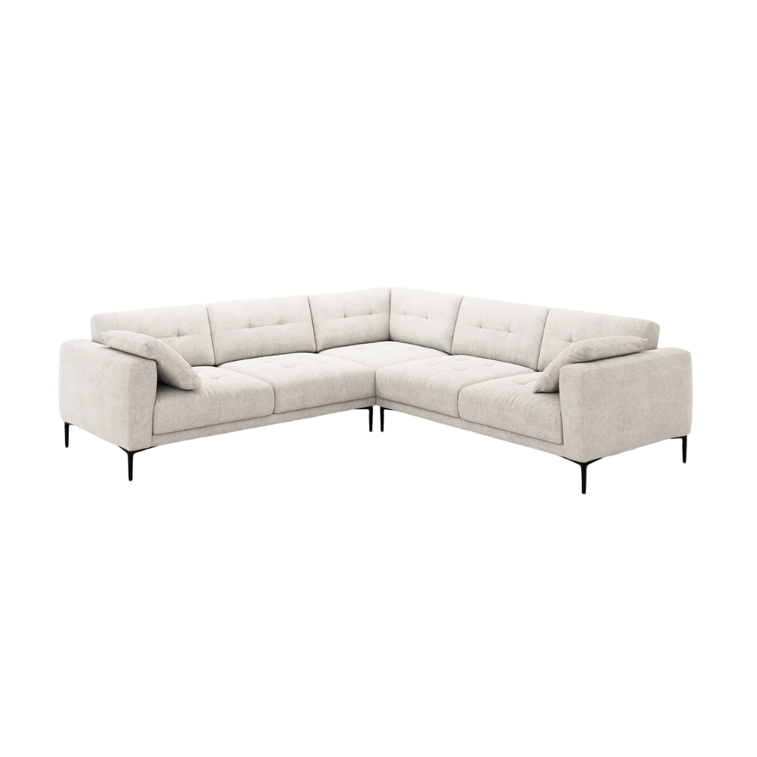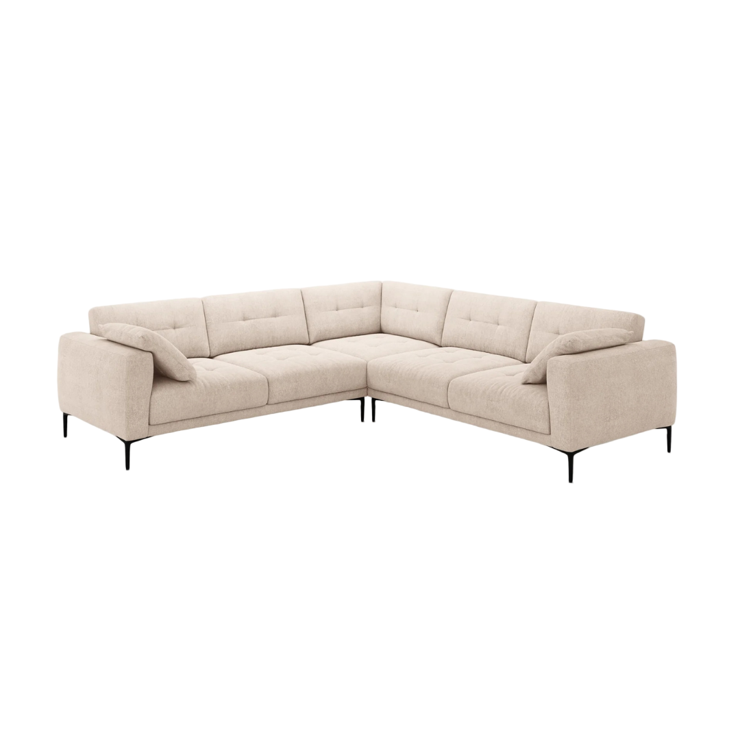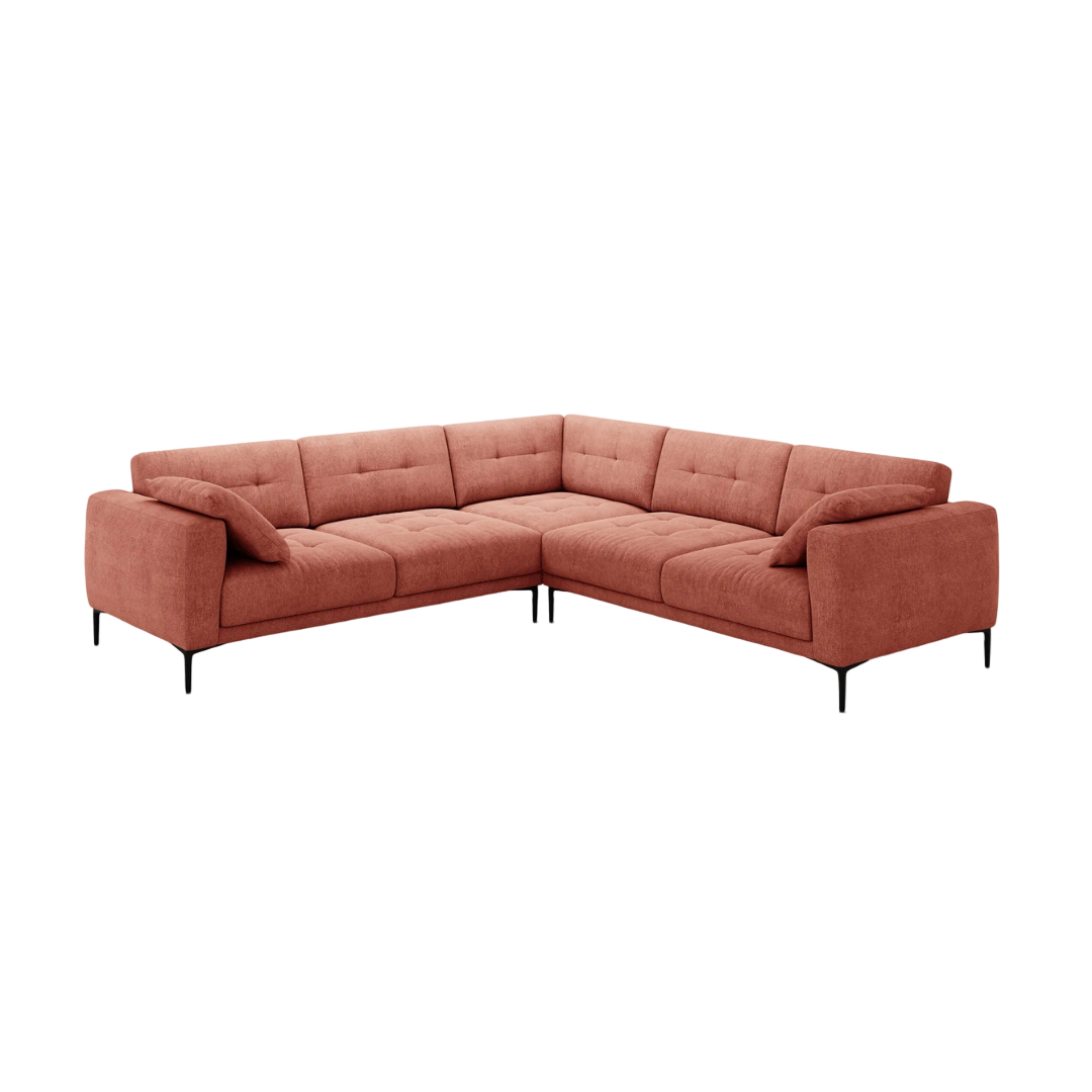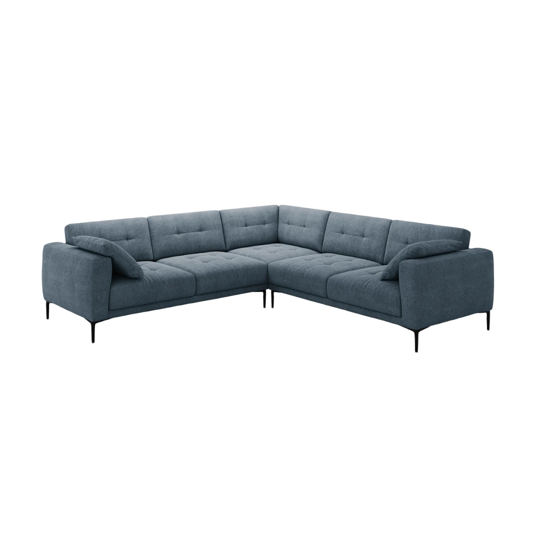 A 290x290 cm-es Bemy sarokkanapé az elegancia és a kényelem kiegyensúlyozott keveréke. Mély ülőfelülettel és letisztult, modern formával rendelkezik. Légies kialakítása könnyed stílust visz bármilyen helyiségbe. A karcsú fekete fém lábak pedig a könnyed, lebegő hatásért felelnek. A Bemy szövet kárpitozású sarokkanapé hatféle színben érhető el.