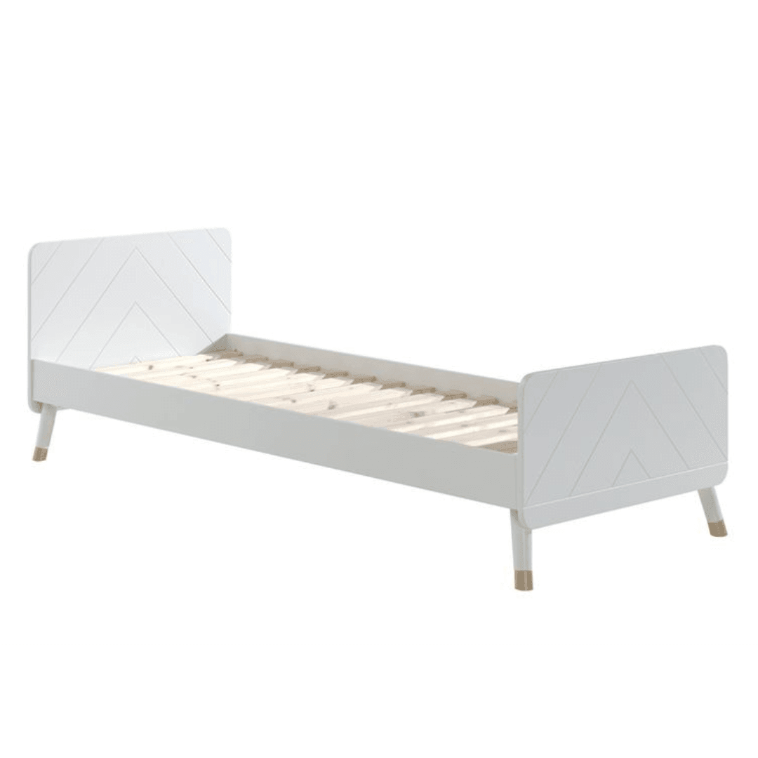 A Billy gyerekágy, egy letisztult, skandináv dizájn ihlette bútor, amely tökéletes választás nagyobb gyermekek számára. Retro kialakítása kiváló összhangban van a modern arany részletekkel, mintázattal és színekkel. Négyféle elegáns, pasztell színben kapható, így könnyedén illeszthető bármilyen enteriőrbe. 90x200 cm-es matrac használható hozzá, a termék az ágyrácsot tartalmazza. A matrac nem tartozék.