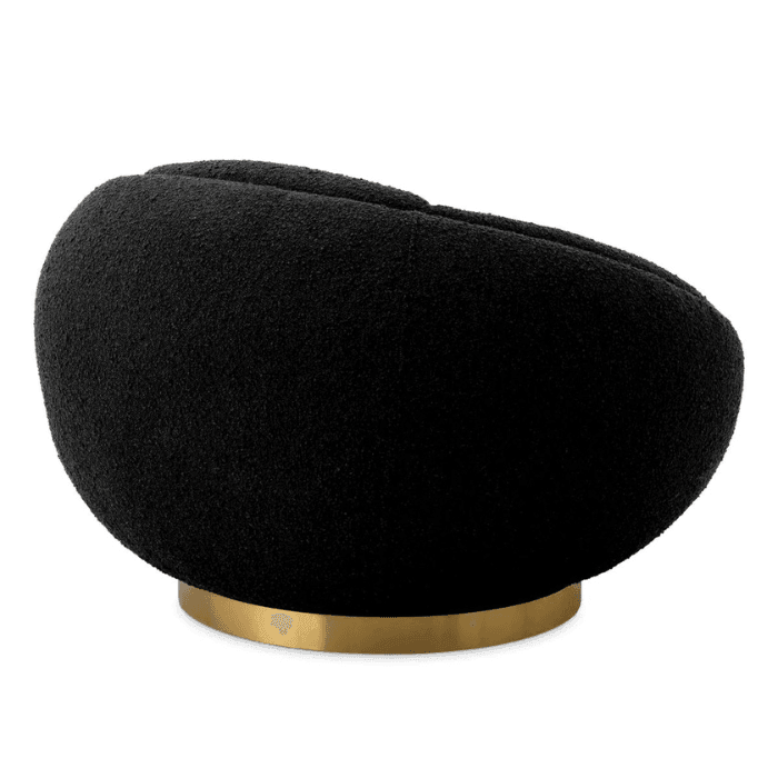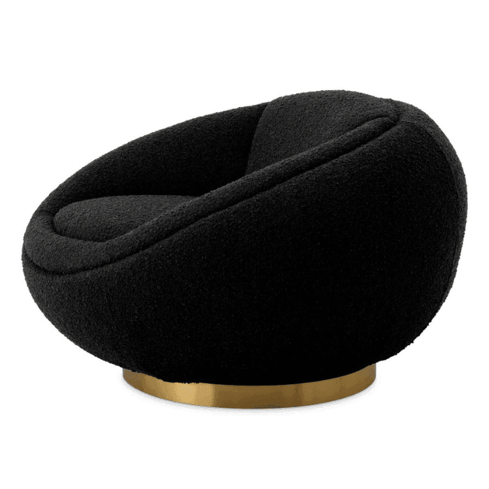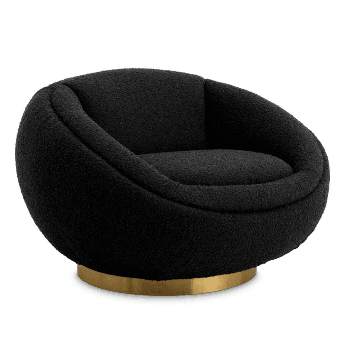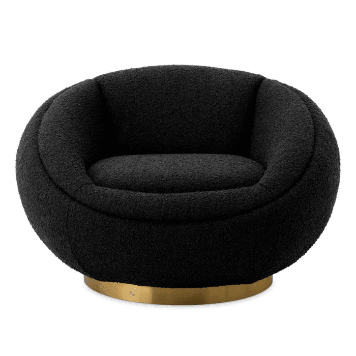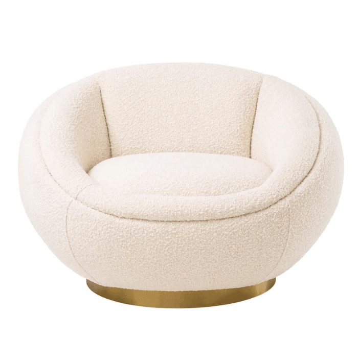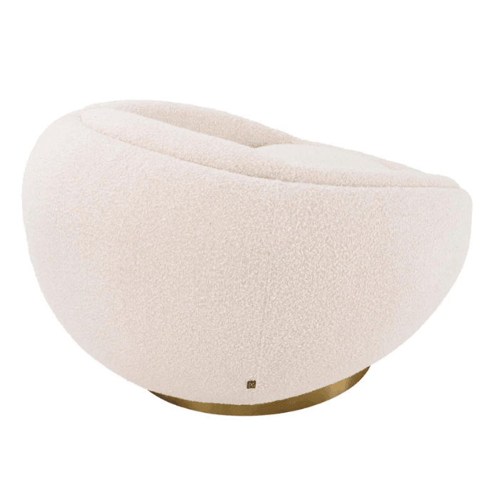 Varázsolj egyedi stílust otthonodba a bájos Bollinger forgó buklé fotel segítségével. Akár olvasáshoz keresel egy kényelmes helyet, akár csak pihenni szeretnél, ez a szép fotel neked való darab. 360 fokban forgatható, így nem csak kényelmes és dizájnos ülőalkalmatosság, hanem egyben nagyon praktikus is. Letisztult és körkörös kialakításával lenyűgöző kortárs stílust sugároz. Puha tapintású buklé anyaggal van kárpitozva, amit matt sárgaréz talp egészít ki.