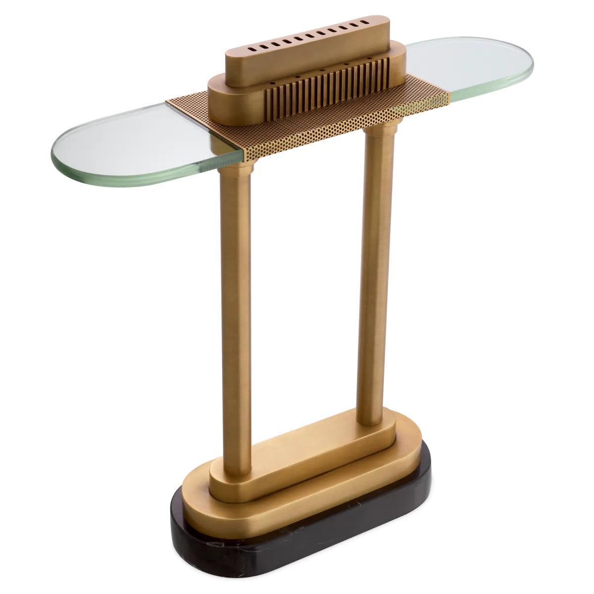 Fedezd fel a hagyományos eleganciát a különleges Bologno asztali lámpával. Ez a vonzó, Art Deco stílusú bankár asztali lámpa nagyszerű hangulatot varázsol belső tereidbe. Az antik sárgaréz felülettel és átlátszó üvegbúrával ellátott lámpatest fekete márvány alapra van felszerelve.