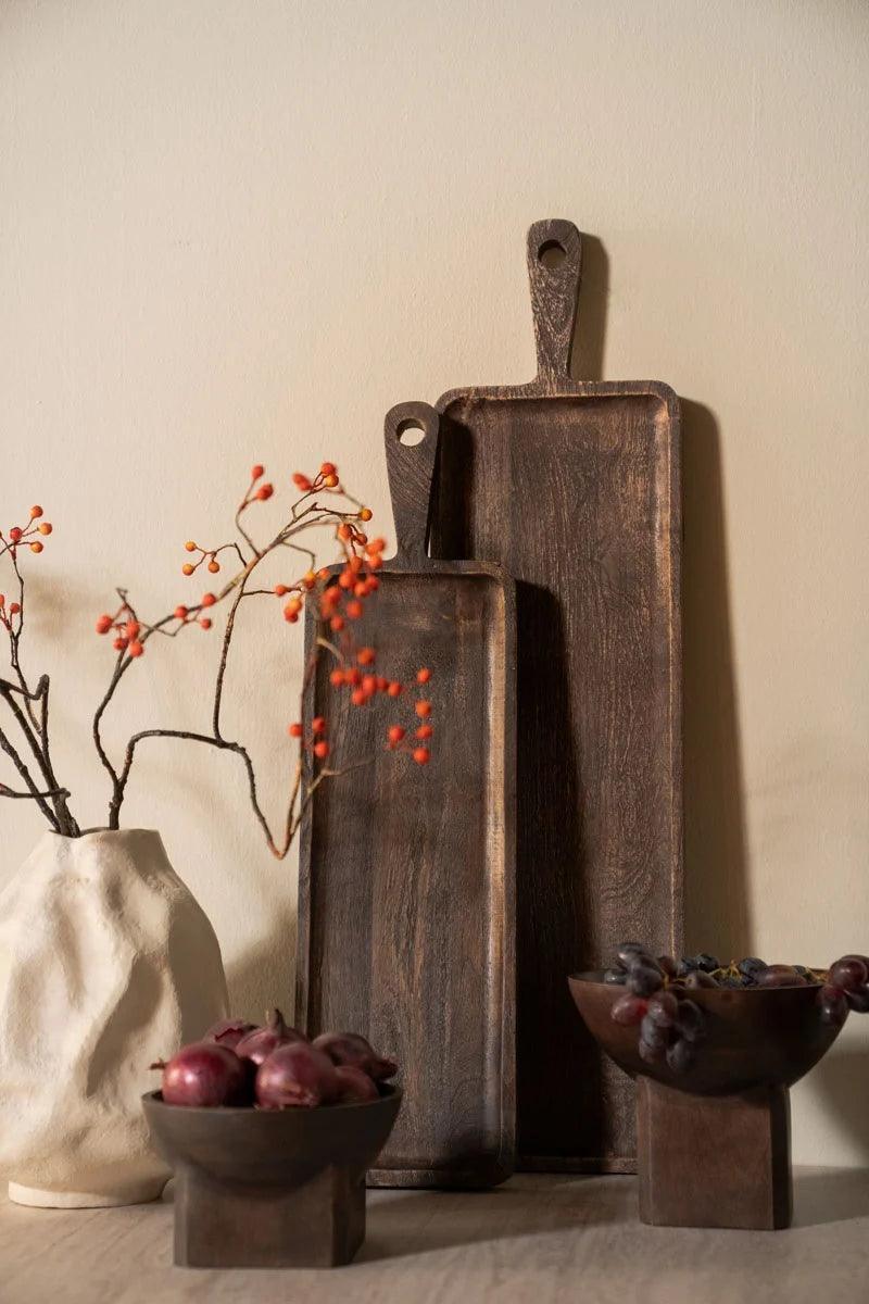 A Bora tál egy elegáns és funkcionális kiegészítő, mely modern megjelenésével bármely enteriőr dísze lehet. A tál matt fekete, vagy barna antik színűre festett mangófából készült, amely nemcsak esztétikai élményt nyújt, hanem tartósságáról is ismert. A Bora tál stílusos dizájnja tökéletesen illeszkedik a minimalista stílust kedvelők otthonodba, miközben praktikus megoldást kínál a mindennapi használatra.