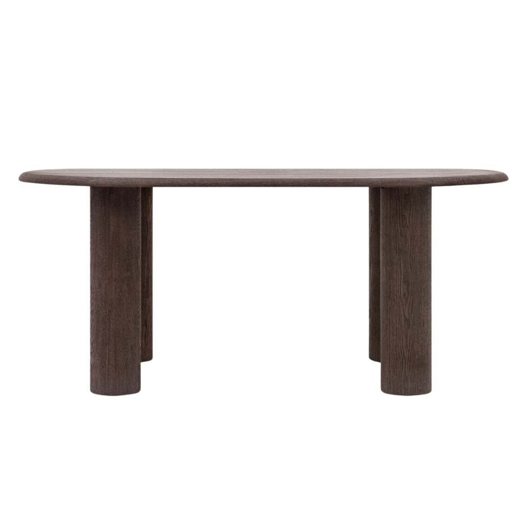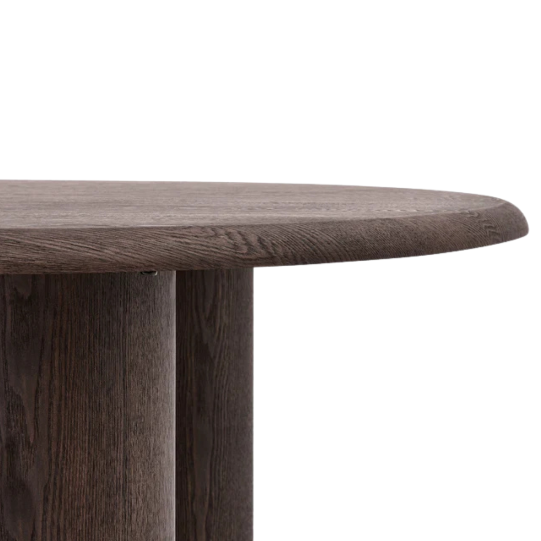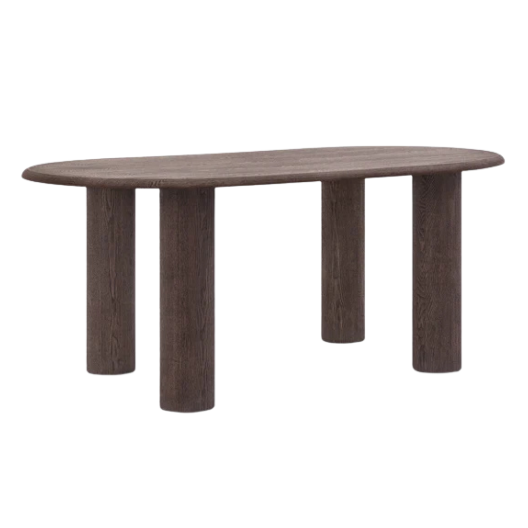 A merész, mégis kifinomult Bufi étkezőóasztal ötvözi az organikus melegséget a modern kézművességgel. Lekerekített sziluettje és mélybarna színe minden étkező központi elemévé teszi. Organikus elegancia, a lágyan lekerekített élek és a gazdag faerezet természetes érzetet kölcsönöznek. Szilárd szerkezet, a kőrisfa furnérlapot MDF lábak támasztják alá, rejtett fémlemezzel összekötve a stabilitás érdekében. Időtálló kivitel, a sötétbarna fa árnyalatok modern és klasszikus belső tereket is kiemelik, stílusuk időtlenül divatos. Párosítsd más Bufi kollekcióból származó darabokkal a harmonikus tér érdekében.