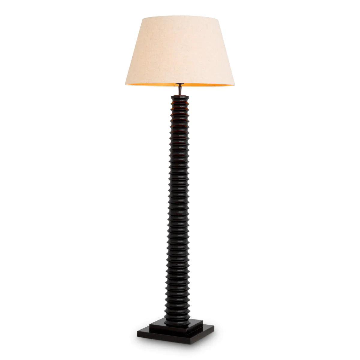 Bemutatjuk az Eichholtz Callao állólámpát, ahol a kifinomultság és a funkcionalitás találkozik. Ez az exkluzív lámpa egy fenséges mango fa testet mutat be fényűző fekete bevonattal, amelyet tömör fekete gránittalp támogat. A bézs színű szövet lámpabúrában található arany bélés meleg fényben fürdeti a teret, fokozva a nappali élményét.