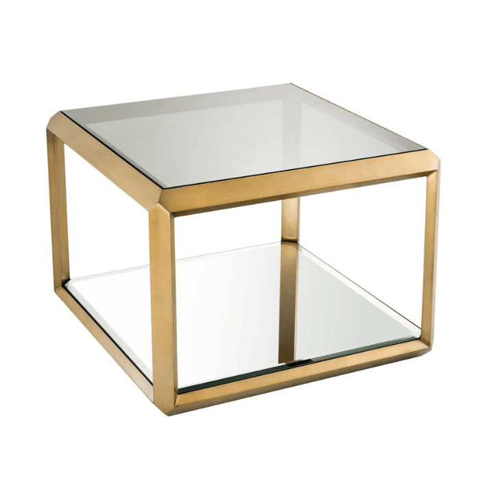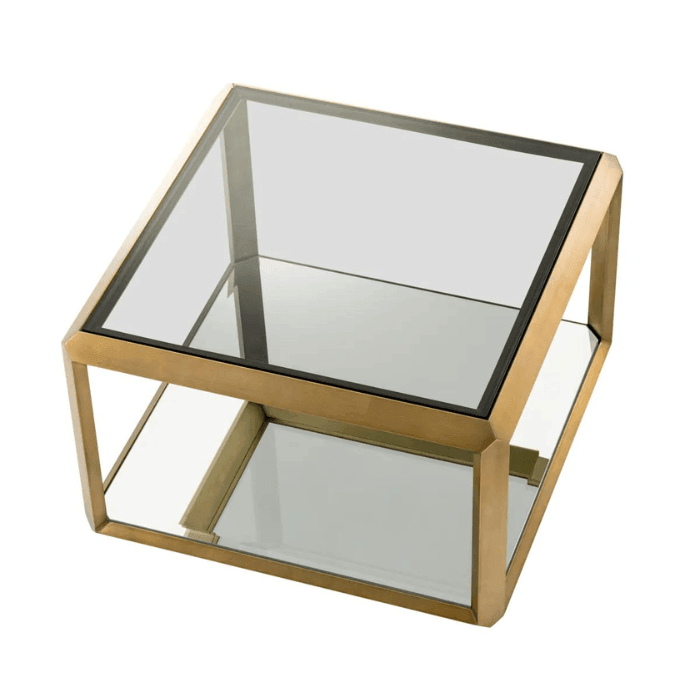 Éld át a hetvenes évek csábító stílusát a dekadens Callum füstüveg lerakóasztallal. Csiszolt sárgaréz kerete ferde peremekkel öleli körül a füstszínű üveglapot. Az alsó polc pedig tükrös üvegből készült. Legyen szó retro vagy kortárs megjelenésről, ez a stílusos lerakóasztal tökéletes választás. A füstüveg és a tükörlap kombinációja extra fényt és térhatást biztosít. A csiszolt sárgaréz meleg fénye különleges eleganciát kölcsönöz a térnek.