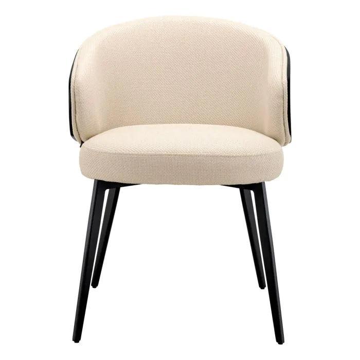 Fedezd fel az Eichholtz Camerota étkezőszéket, ahol az elegáns design és a funkcionális elegancia találkozik. Ez kényelmes szövetbe burkolt szék elegáns, fekete fa háttámlával büszkélkedhet, amely tökéletesen illeszkedik a kifinomult étkezőbútorok Eichholtz sorozatába. Nélkülözhetetlen darab azok számára, akik kifinomultságra vágynak az asztaluknál.
