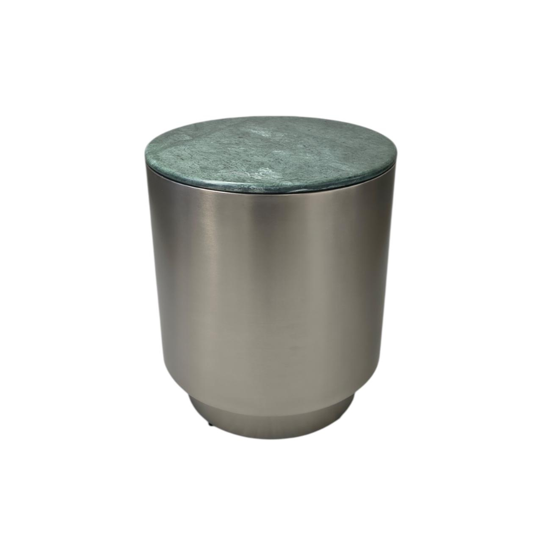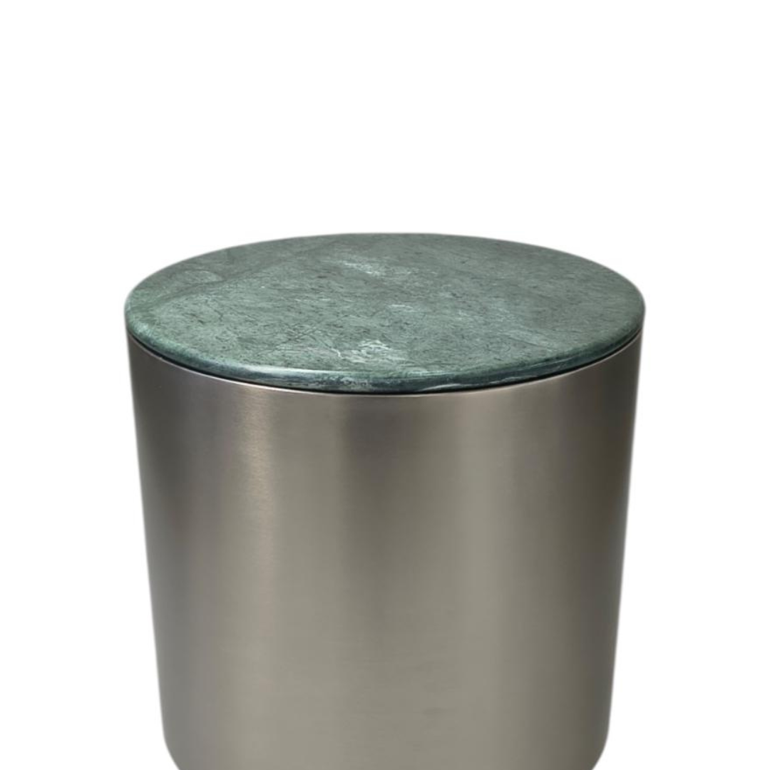 A kerek Cangas lerakóasztal a polírozott zöld márvány és a szálcsiszolt nikkel talp kombinációjával alkot feltűnő kontrasztot. Kompakt mérete sokoldalúvá teszi, akár kiegészítőként, akár díszként szolgálhat, míg szoborszerű sziluettje mélységet és karaktert kölcsönöz bármely élettérnek. A Cangas dohányzóasztal változatban is elérhető.