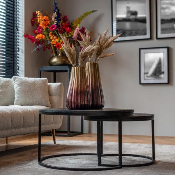 A Catana dohányzóasztal tökéletes választás azoknak, akik elegáns és modern bútorokat keresnek otthonukba. A szett két darabból áll, amelyek fekete színűek, így könnyen illeszkednek bármilyen enteriőrbe. A minőségi anyagokból készült asztalok tartósak és könnyen tisztíthatóak, így hosszú éveken át szolgálhatnak. A két darab asztal különböző méretű, így lehetőség van őket egymás mellé helyezni, vagy külön-külön használni.