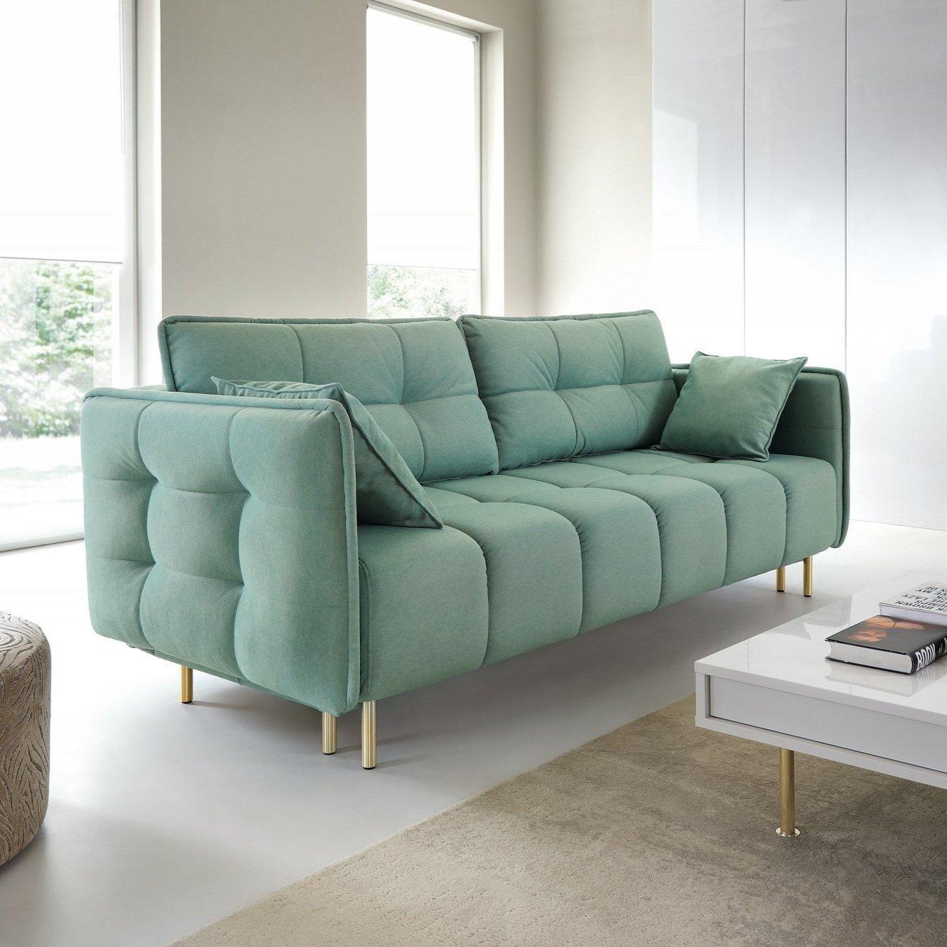 A Cavola kanapé a modern stílus, a kényelem és a részletekre való odafigyelés harmonikus kombinációja. Ez a modell nem csak kivételes esztétikájával nyűgöz le, hanem funkcionalitásával is. Az ülésen, a háttámlán és a bútor oldalain található gyönyörű varrások egyedi eleganciát adnak az összképhez, így könnyedén igazíthatod a bútort a nappali berendezési stílushoz. Válassz fekete vagy arany lábakat, hogy hangsúlyozd a modern vagy a klasszikus karakterét. A Cavola ágyazható kivitelben kapható.