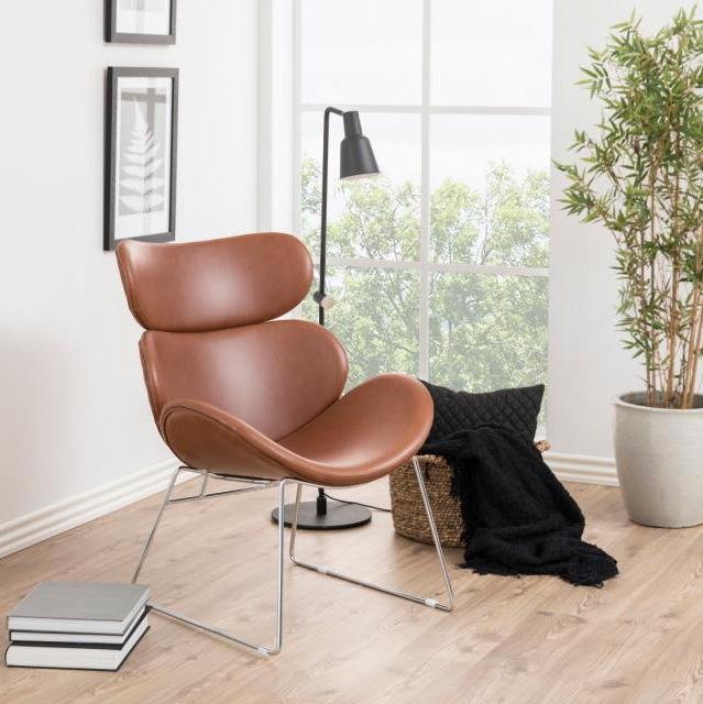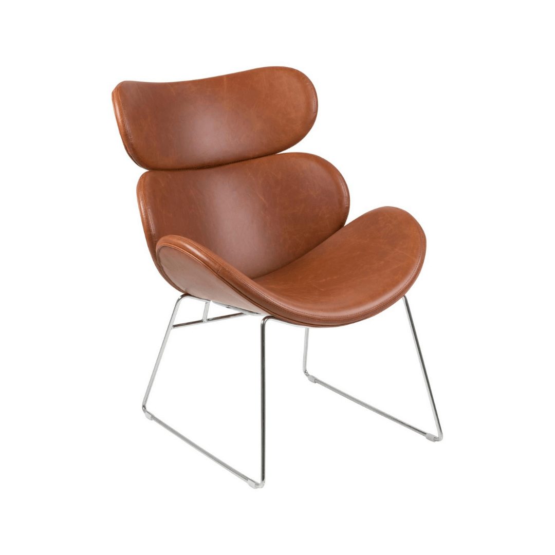 A Cazar szék ívei egyetlen modern bútorban egyesítik a kényelmet és a kortárs stílust. A pihenőszéket króm színű szánkólábak egészítik ki, amelyek elegáns kontrasztot alkotnak a világosbarna textilbőr üléssel. A műanyag lábsapkák minimalizálják a padlón lévő karcolások kockázatát.