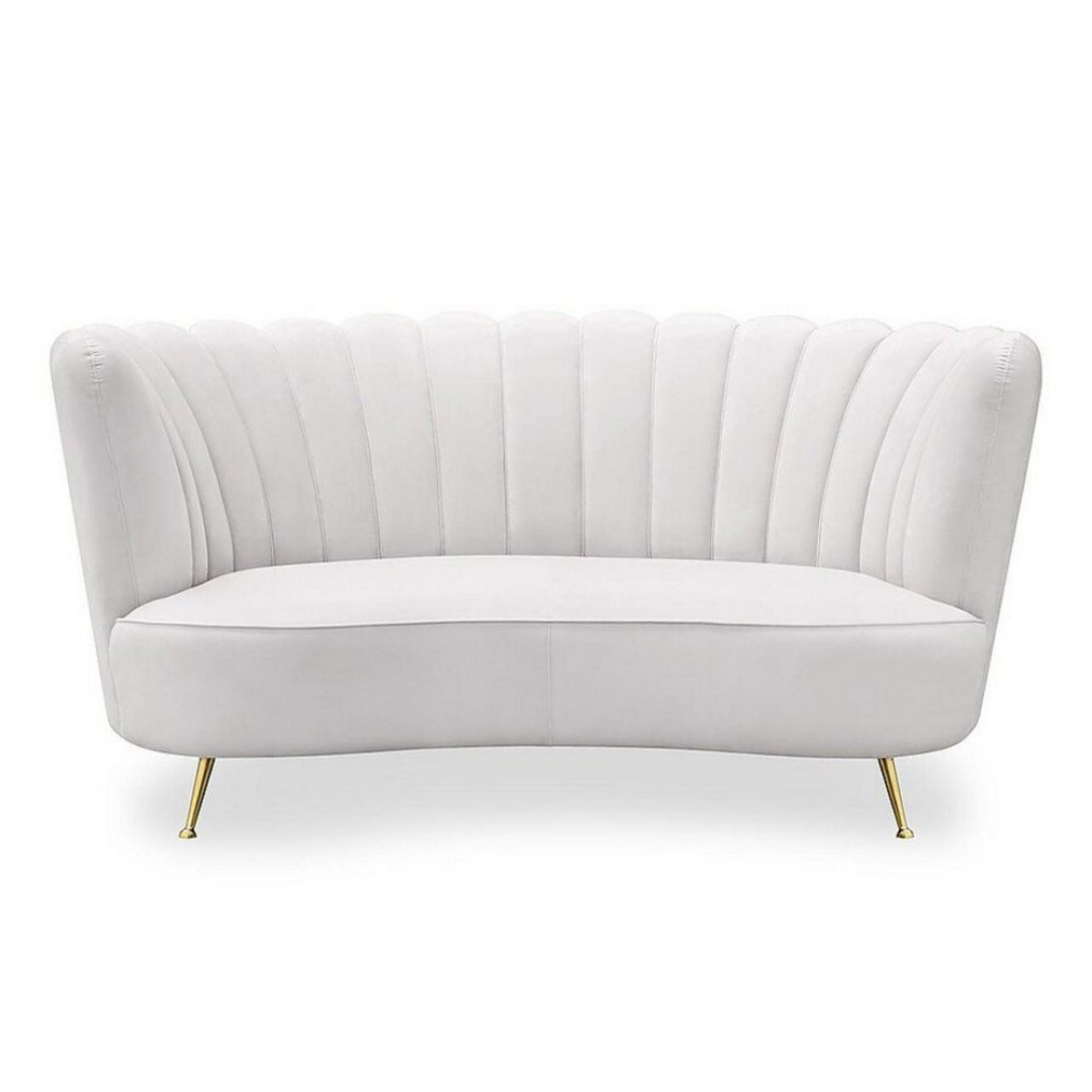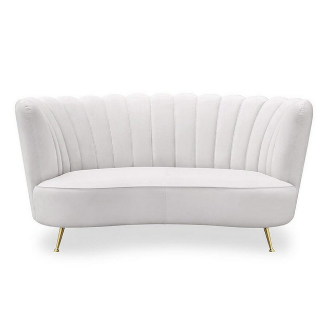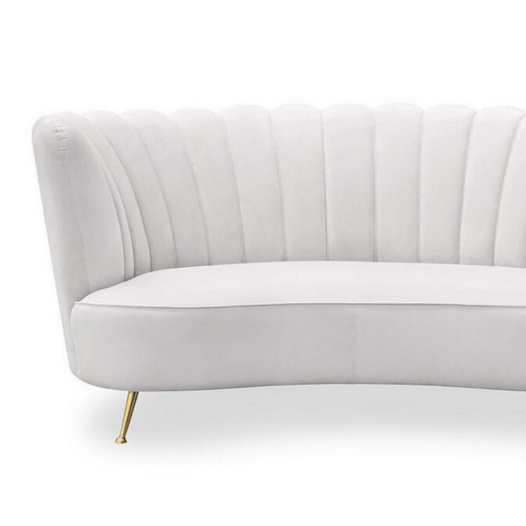A Chloe kanapét elegáns, kagylós formája és luxus kárpitozású, csatornázott háttámla díszíti, amely nyíló virágszirmokként öleli körül az ülőfelületet. Kiegyensúlyozott arányai, puhasága és formája tökéletesen kiegészíti a vékony, arany színű lábait, ezzel elegáns hatást keltve. A Chloe kanapé gyönyörű fehér színben érhető el.