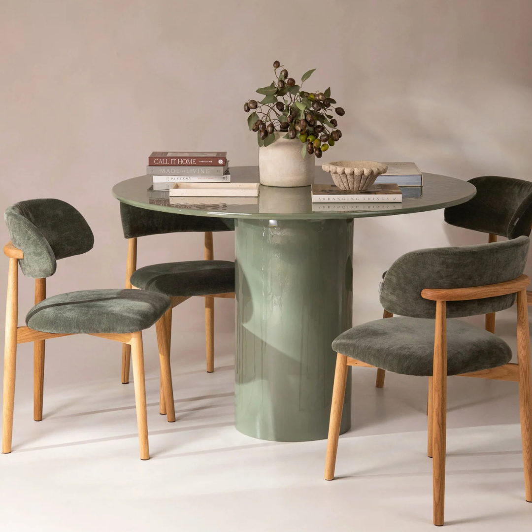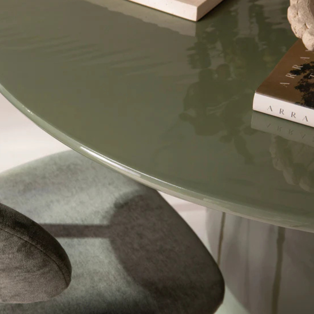 A Clementin étkezőasztal merész hengeres lábazatával és letisztult, kerek asztallapjával minden étkezőben feltűnő középpontot képez. Teljes egészében vasból készült, magasfényű bevonattal, tökéletes egyensúlyt teremtve a tartósság és a kortárs elegancia között. Szoborszerű kialakítás, ami egy minimalista, de mégis merész sziluett, bármilyen környezetben kiemelkedik. Fényes felülettel, a poliuretán bevonat sima, kifinomult felületet biztosít.