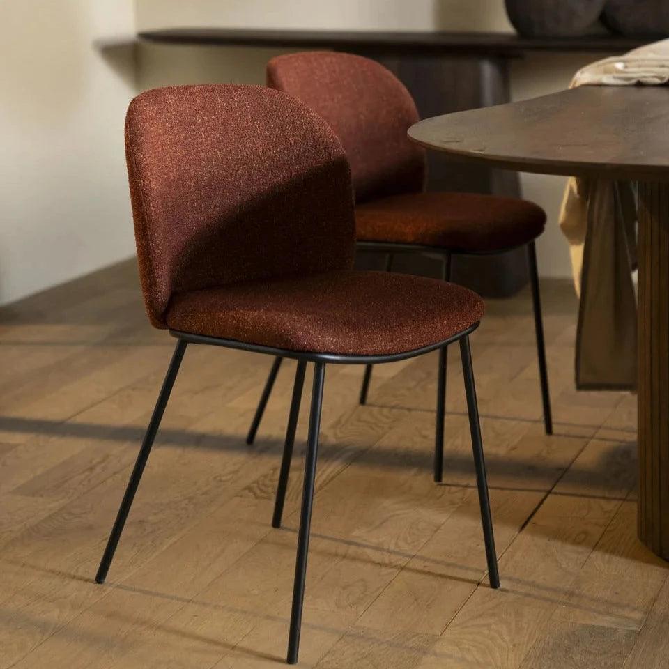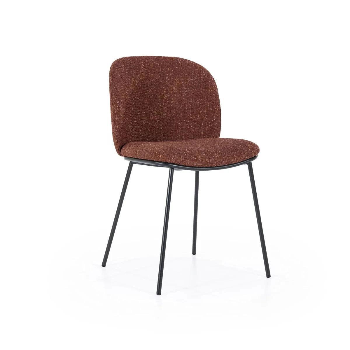 A Clypso szék egy elegáns bútordarab, amely stílusos megjelenésével és kifinomult dizájnjával bármely enteriőrbe illeszkedik. A lekerekített ívek lágyítják a formákat, így egyedi karaktert adva a bútornak. Terrakotta és sötétszürke színben kapható, ezzel lehetővé téve, hogy könnyen alkalmazkodjon a különböző belső terekhez és ízlésekhez. A széket puha, párnázott szövet borítja, amely kényelmet biztosít, a vékony, de stabil fekete fém lábak pedig a tartósságot és a stabilitást garantálják.