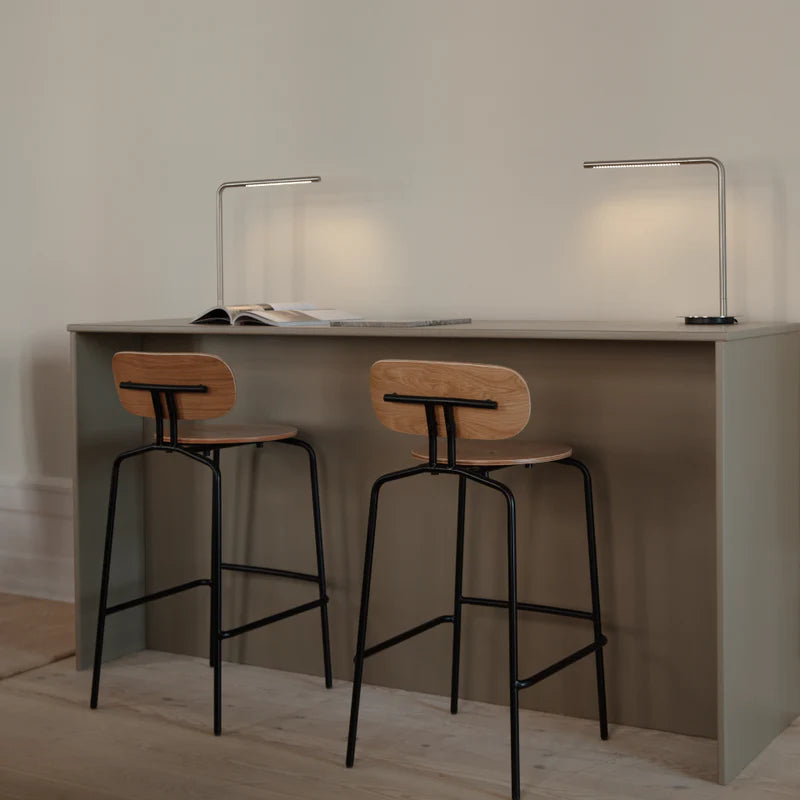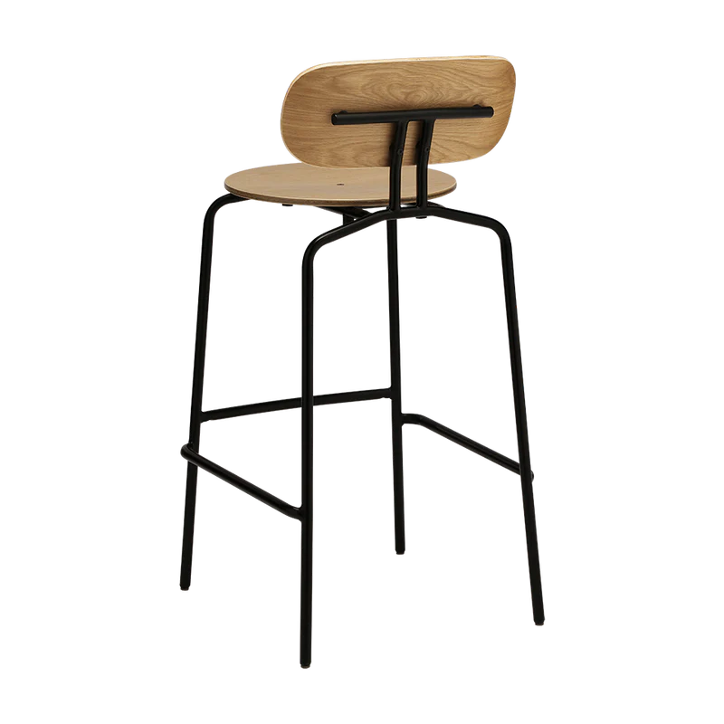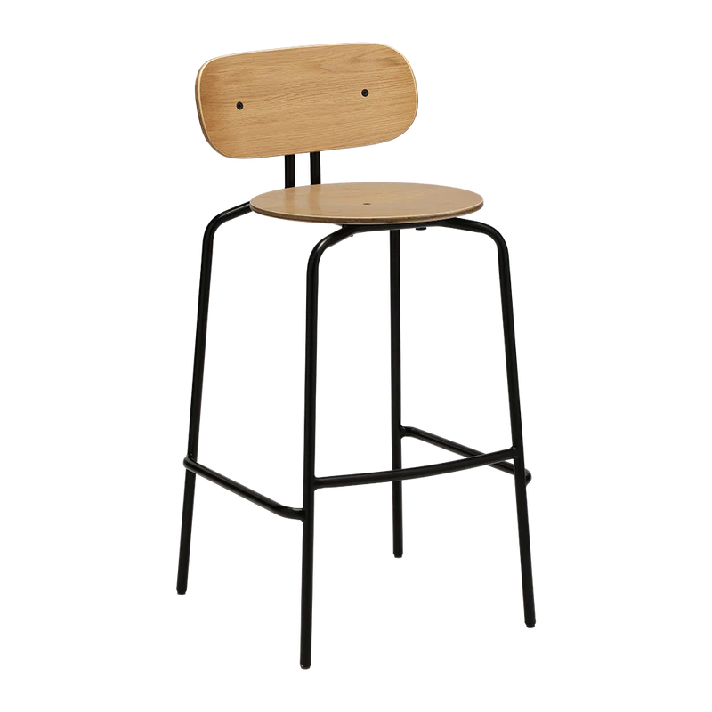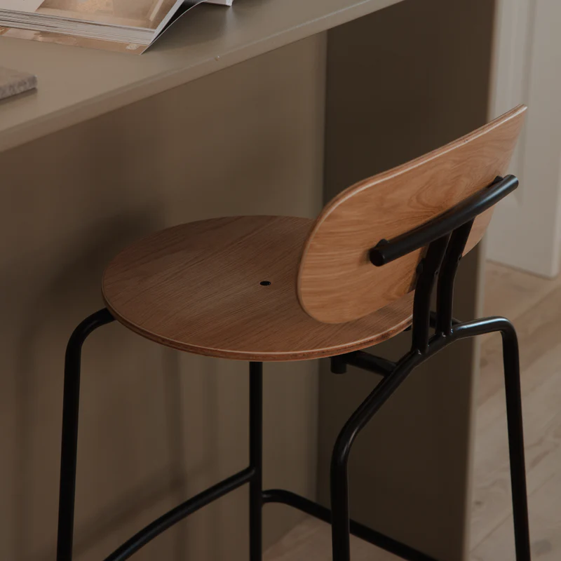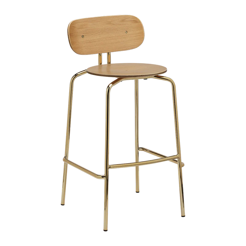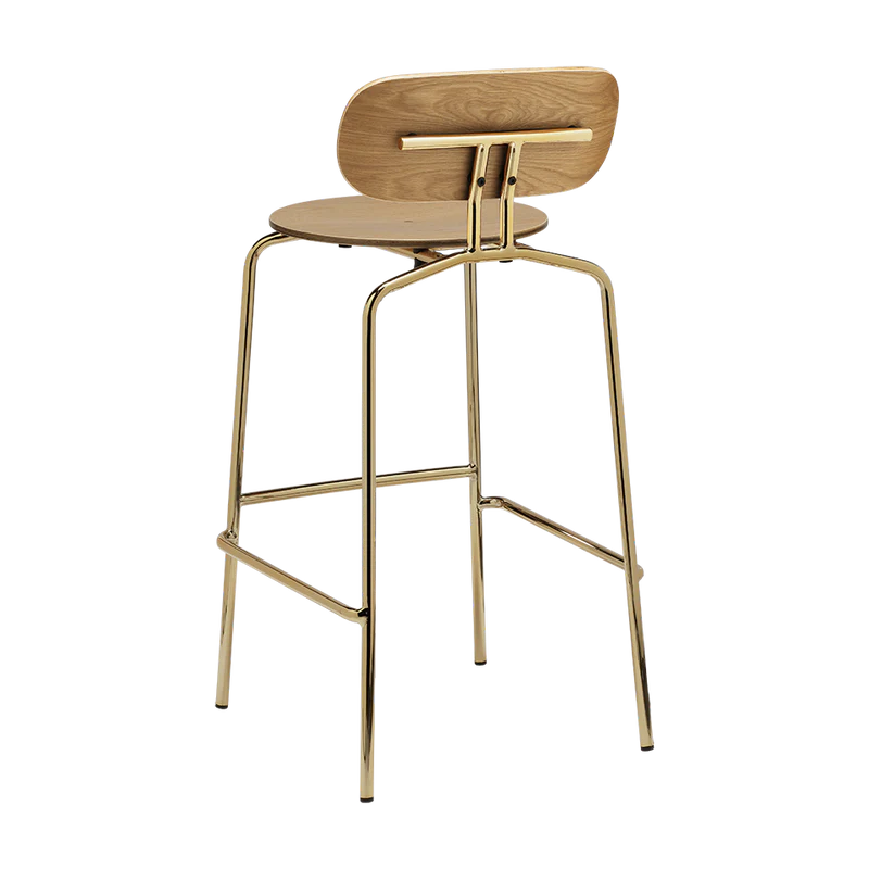 A Curious bárszék a lábak pihentetésére szolgáló egyszerű rúddal biztosítja a kényelmet, miközben izgalmas beszélgetésekre invitál. Tölgyfurnérból készült, sárgaréz vagy fekete lábakkal párosítva harmonikus egyensúlyt teremt a természetes melegség és a kortárs stílus között. A bárszék ülőpárnával vagy anélkül is kapható, ami a kényelem és a személyre szabhatóság extra elemét adja a kialakításhoz.