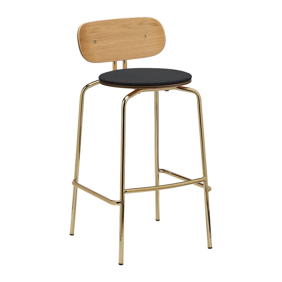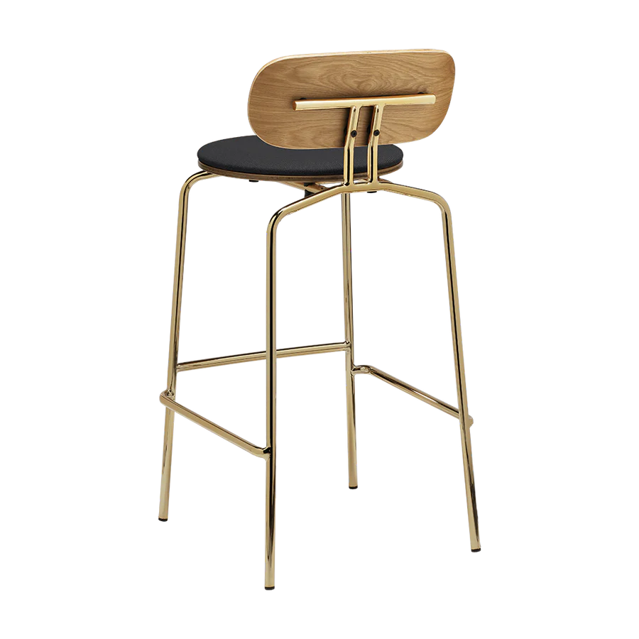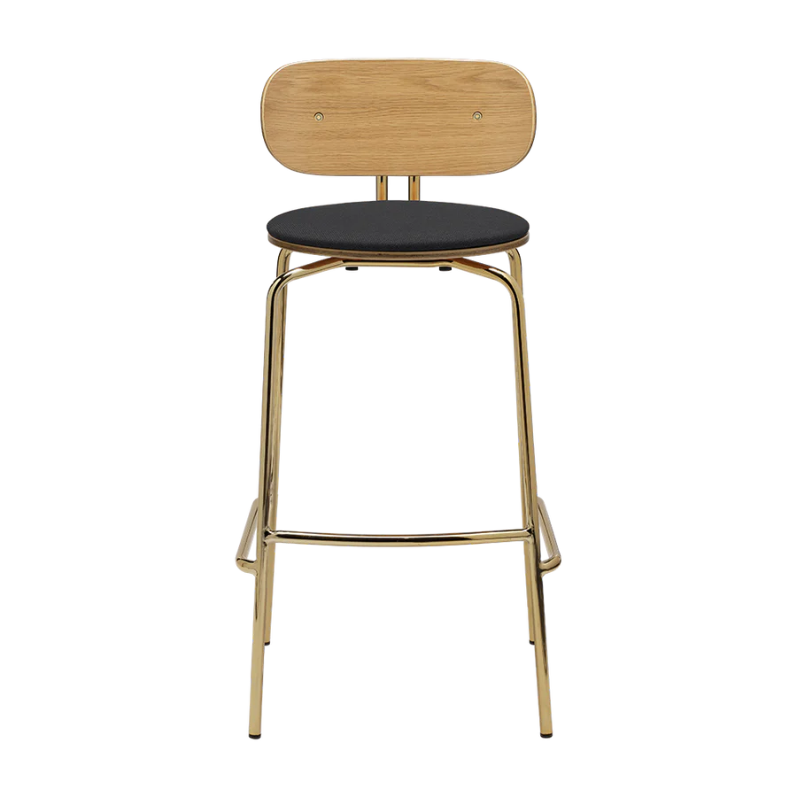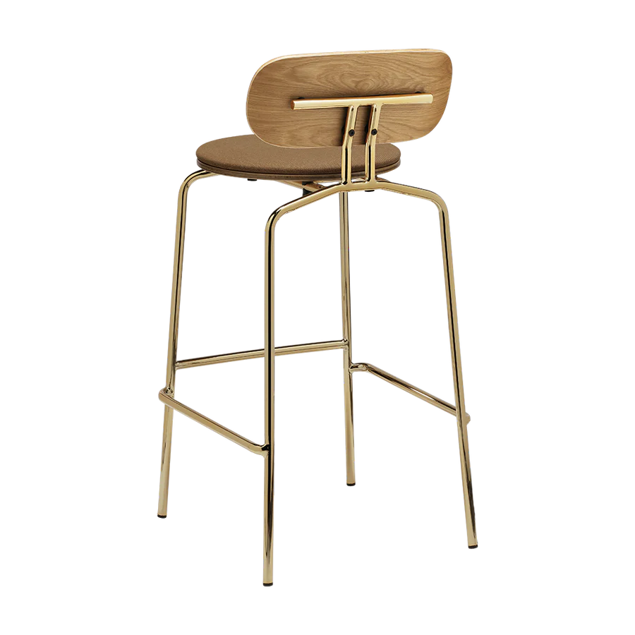 A Curious bárszék a lábak pihentetésére szolgáló egyszerű rúddal biztosítja a kényelmet, miközben izgalmas beszélgetésekre invitál. Tölgyfurnérból készült, sárgaréz vagy fekete lábakkal párosítva harmonikus egyensúlyt teremt a természetes melegség és a kortárs stílus között. A bárszék ülőpárnával vagy anélkül is kapható, ami a kényelem és a személyre szabhatóság extra elemét adja a kialakításhoz.