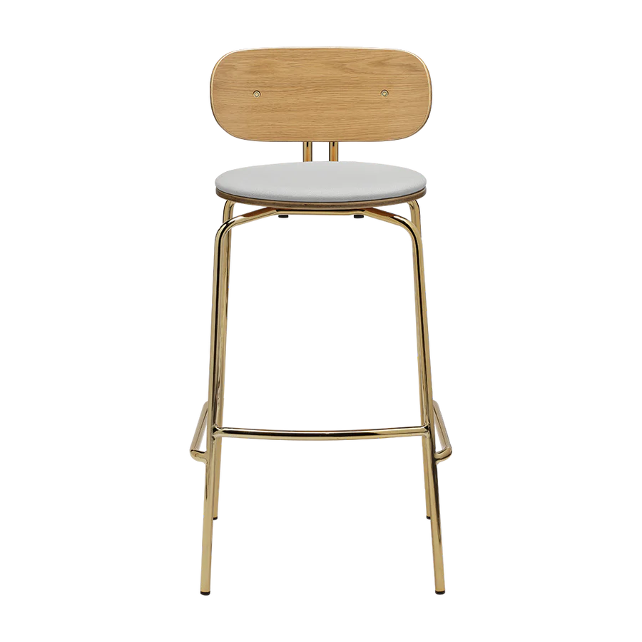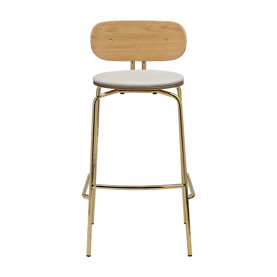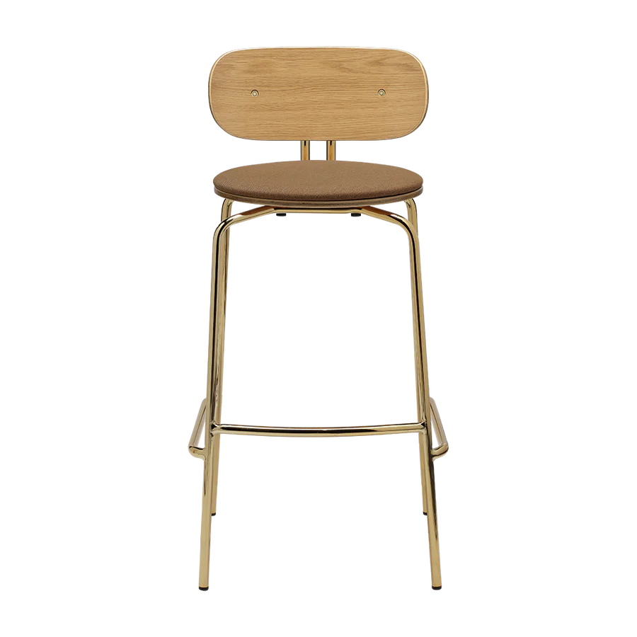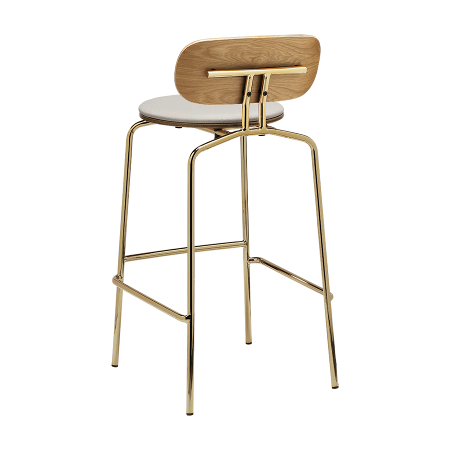 A Curious bárszék a lábak pihentetésére szolgáló egyszerű rúddal biztosítja a kényelmet, miközben izgalmas beszélgetésekre invitál. Tölgyfurnérból készült, sárgaréz vagy fekete lábakkal párosítva harmonikus egyensúlyt teremt a természetes melegség és a kortárs stílus között. A bárszék ülőpárnával vagy anélkül is kapható, ami a kényelem és a személyre szabhatóság extra elemét adja a kialakításhoz.