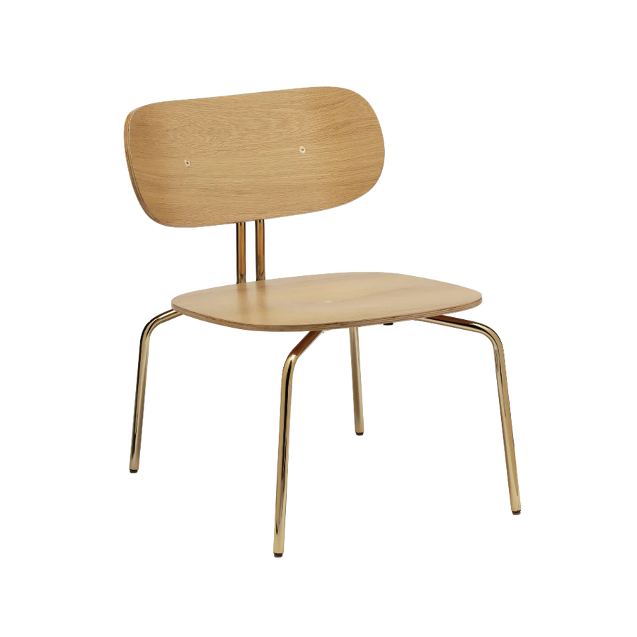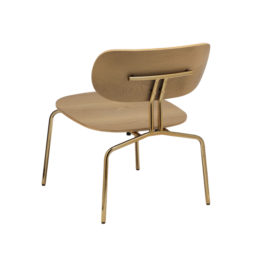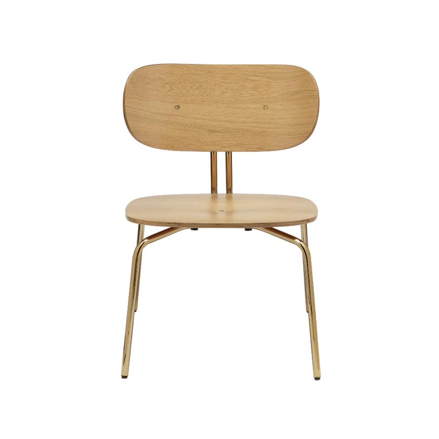 A tölgyfa furnérból készült szék sárgaréz vagy fekete lábakkal párosul, harmonikus egyensúlyt teremtve a természetes melegség és a modern stílus között. Ülőpárnával vagy anélkül is kapható, ami extra kényelmet és személyre szabhatóságot biztosít a dizájnnak.