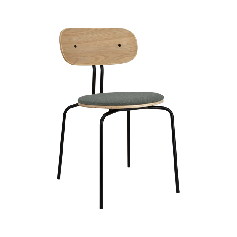 A Curious egy egymásba rakható szék kollekció, amely könnyed, minimalista és elegáns kifejezéssel bír. A tölgyfafurnérból készült Curious sárgaréz vagy fekete lábakkal kapható, de kényelmet fokozó ülőpárnával kiegészítve is elérhető. Az ülőpárna az új, 100%-ban újrahasznosított Horizons szövetből 17 egyedi színben, valamint a Teddy Bear szövetből barna vagy fehér színben kapható. Ezen kívül egyedi kérésre Kvadrat és Sørensen bőrkárpitozás is rendelhető. A széket úgy tervezték, hogy számtalan környezetbe és célra megfeleljen, és minden otthonban - kicsiben és nagyban egyaránt - jól fog mutatni. Legyen a konyhában egy étkezőgarnitúra része, vagy használj csak egyet az öltözőasztalhoz, vagy hagyjd, hogy feldobja az étkezőszobai környezetet.