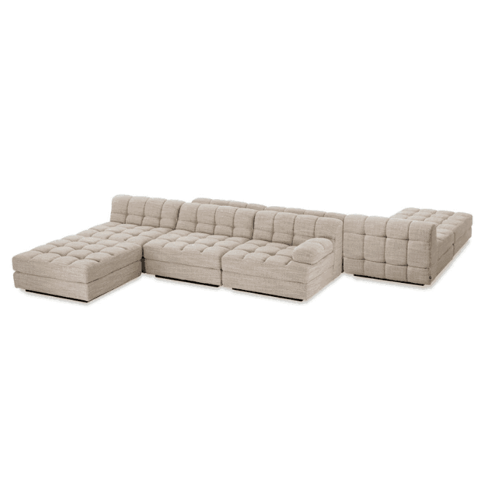 Éld át a moduláris design csúcsát az Eichholtz Dean szövet ottomán segítségével. Maga a luxus megtestesítője, egy igazán sokoldalú darab. A Dean kollekció további moduljaival kombinálva bármilyen belsőépítészeti elképzelést megvalósíthatsz. Emeld nappalid színvonalát új magasságokba ezzel az elegáns darabbal, amely kiválóan alkalmas arra, hogy kényelmes és stílusos pihenő hely legyen a nappalidban. Bármely enteriőrbe könnyedén beilleszthető és bármikor újra rendezheted, hogy a tér mindig friss és inspiráló maradjon.