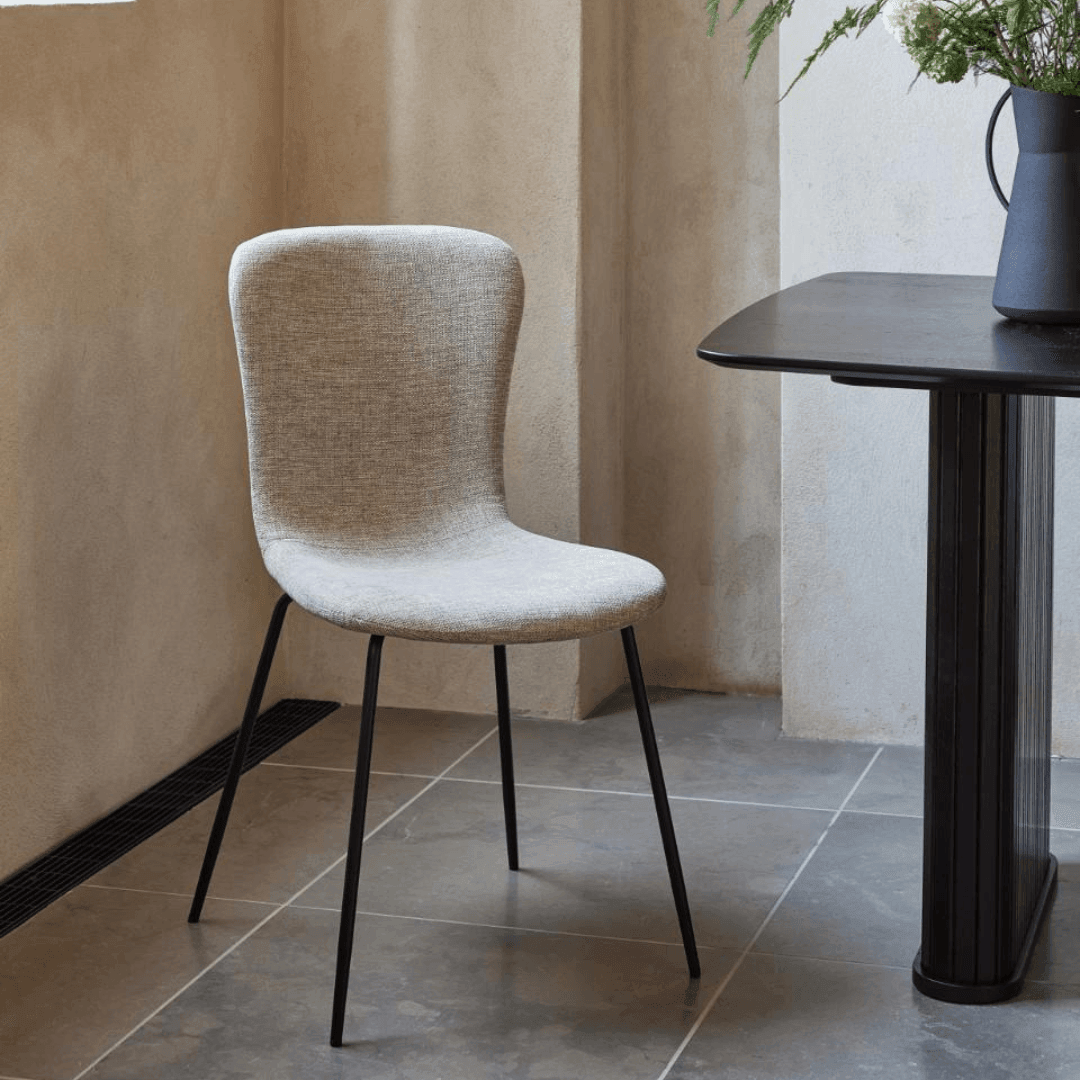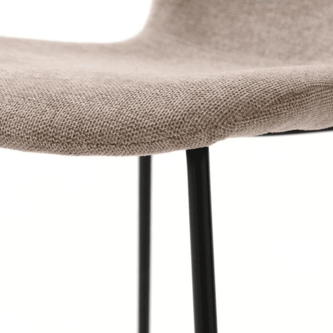 Az Delta szék szövetből készült, puha és kényelmes. A lábak fekete porfestett fémből készültek, amelyek tartósak és mindemellett modern megjelenést biztosítanak. A bézses, világosbarnás szín könnyen illeszkedik a kívánt enteriőrhöz vagy stílushoz. Mérete: 47x85x56 cm.