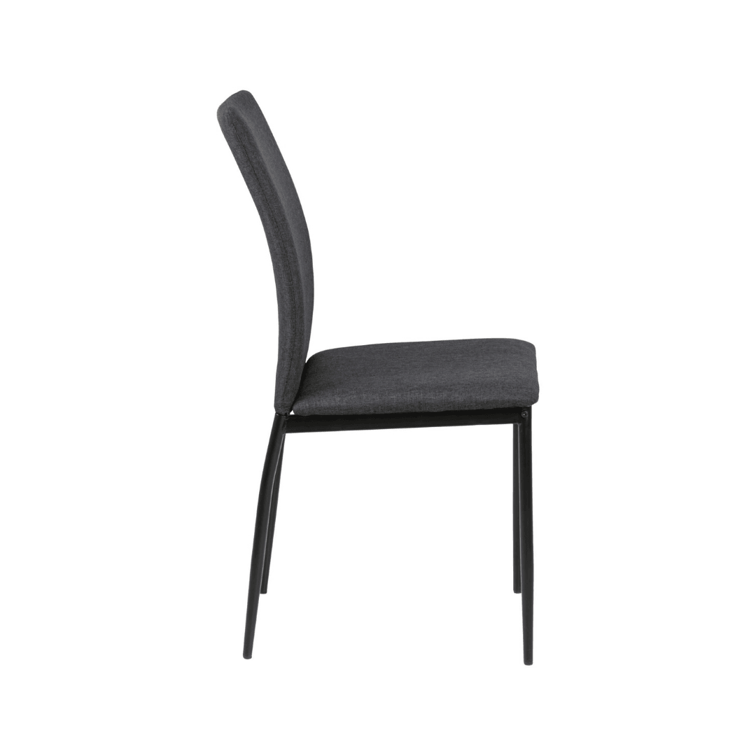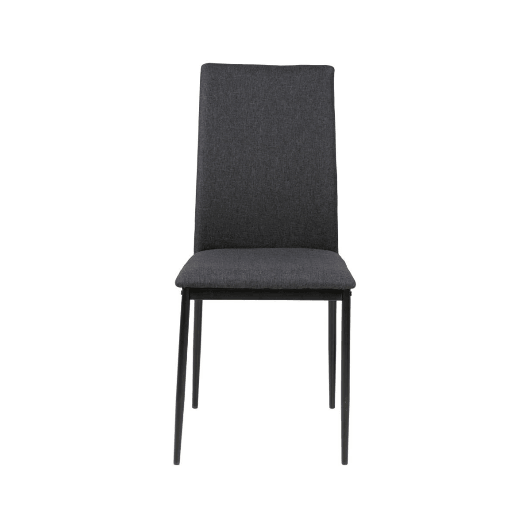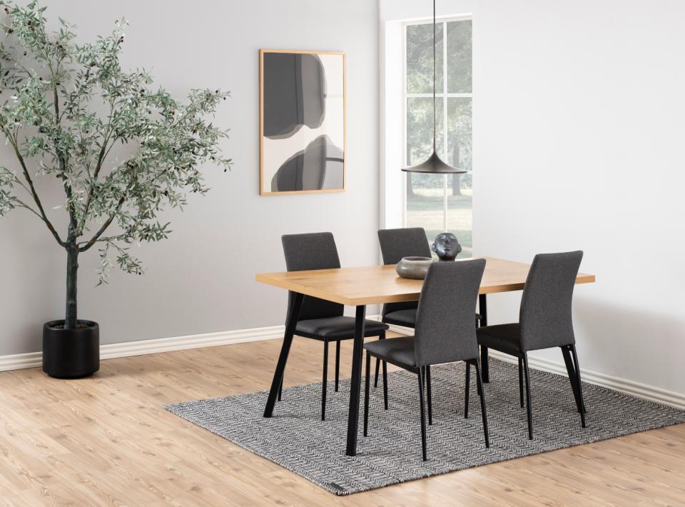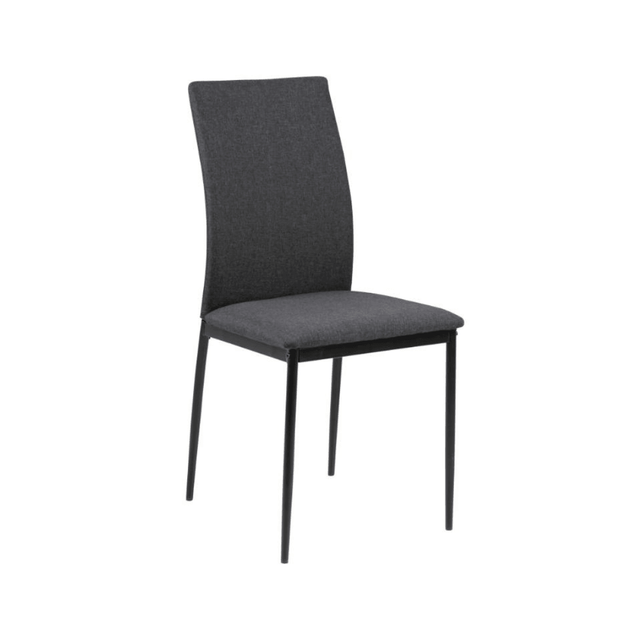 A letisztult vonalvezetésű minimalista dizájn kulcsfontosságú jellemzője a Demina étkezőszéknek, amelynek vékony fekete fémlábai porszórt bevonattal vannak kiegészítve. A sötétszürke szövettel ez a megjelenés elegáns és modern, így könnyedén illeszkedik minden belső térbe.