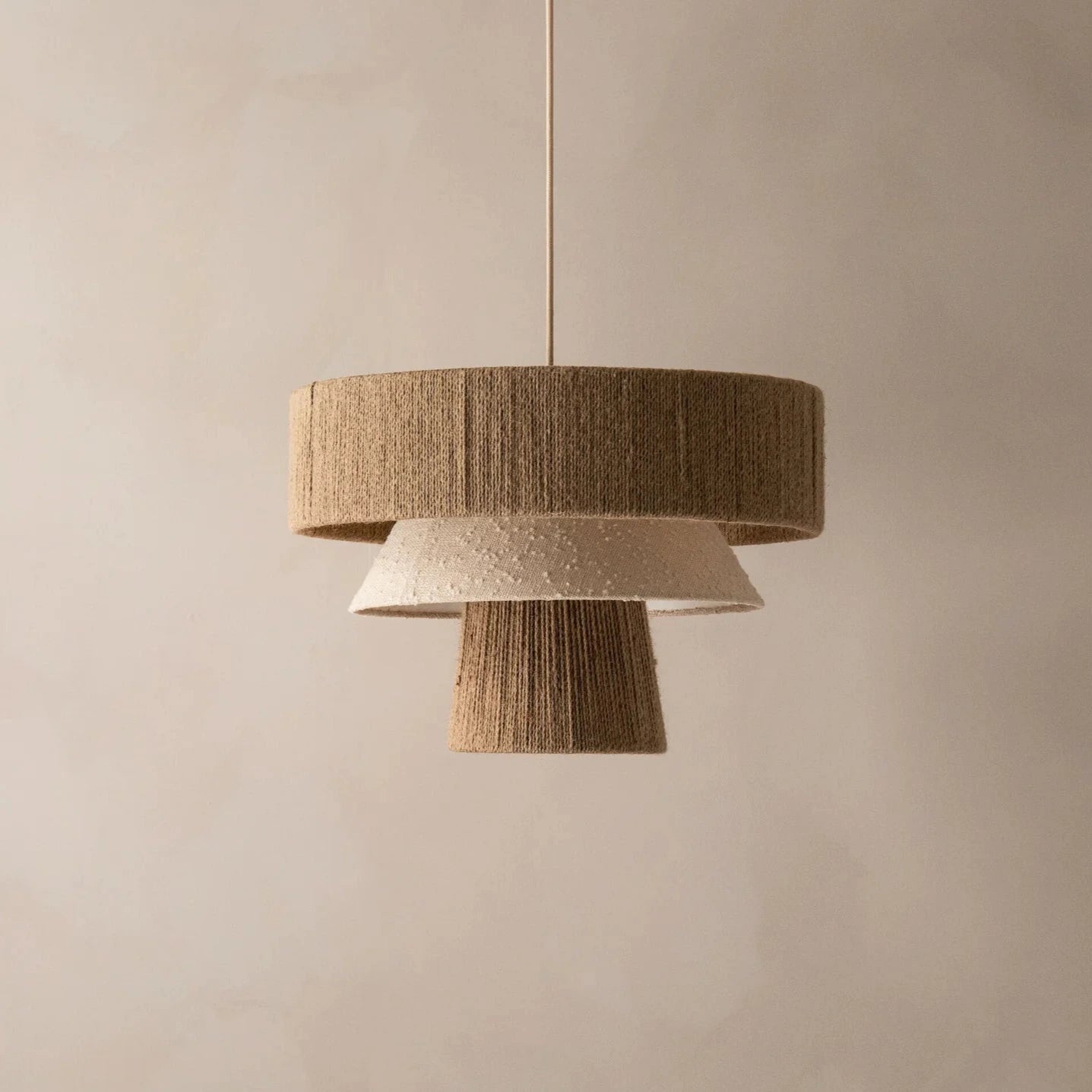 A Desa függőlámpa melegséget és egyedi hangulatot kölcsönöz minden helyiségnek. Háromrészes kialakítással rendelkezik, melyekből a felső és az alsó szövet szálakból, a középső pedig buklé anyagból készült. A természetes színeket stílusos dizájnnal ötvözi, így tökéletes bármely szobába.