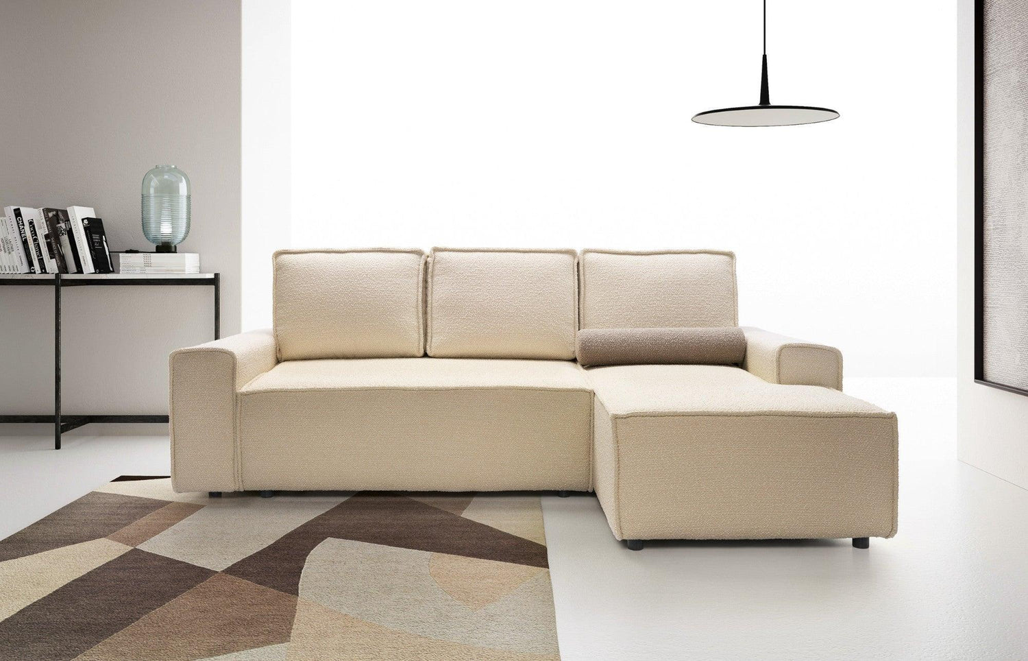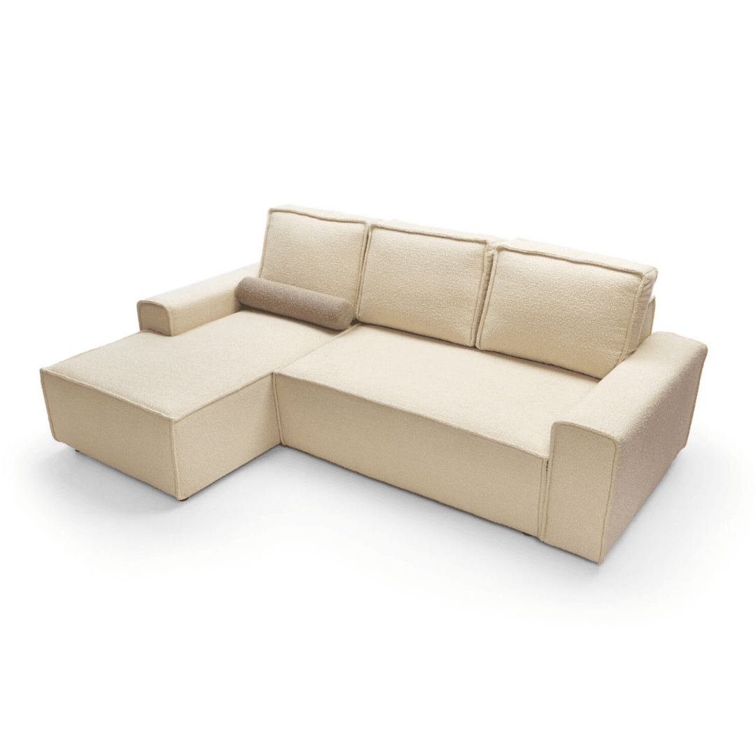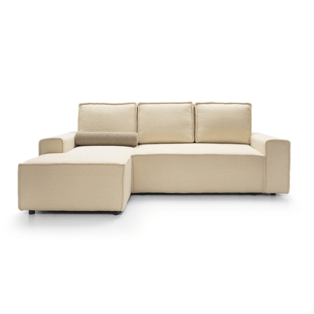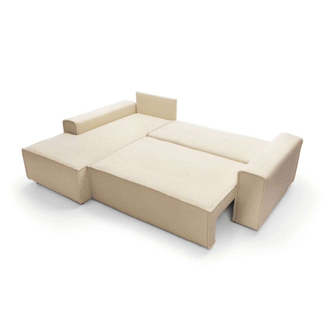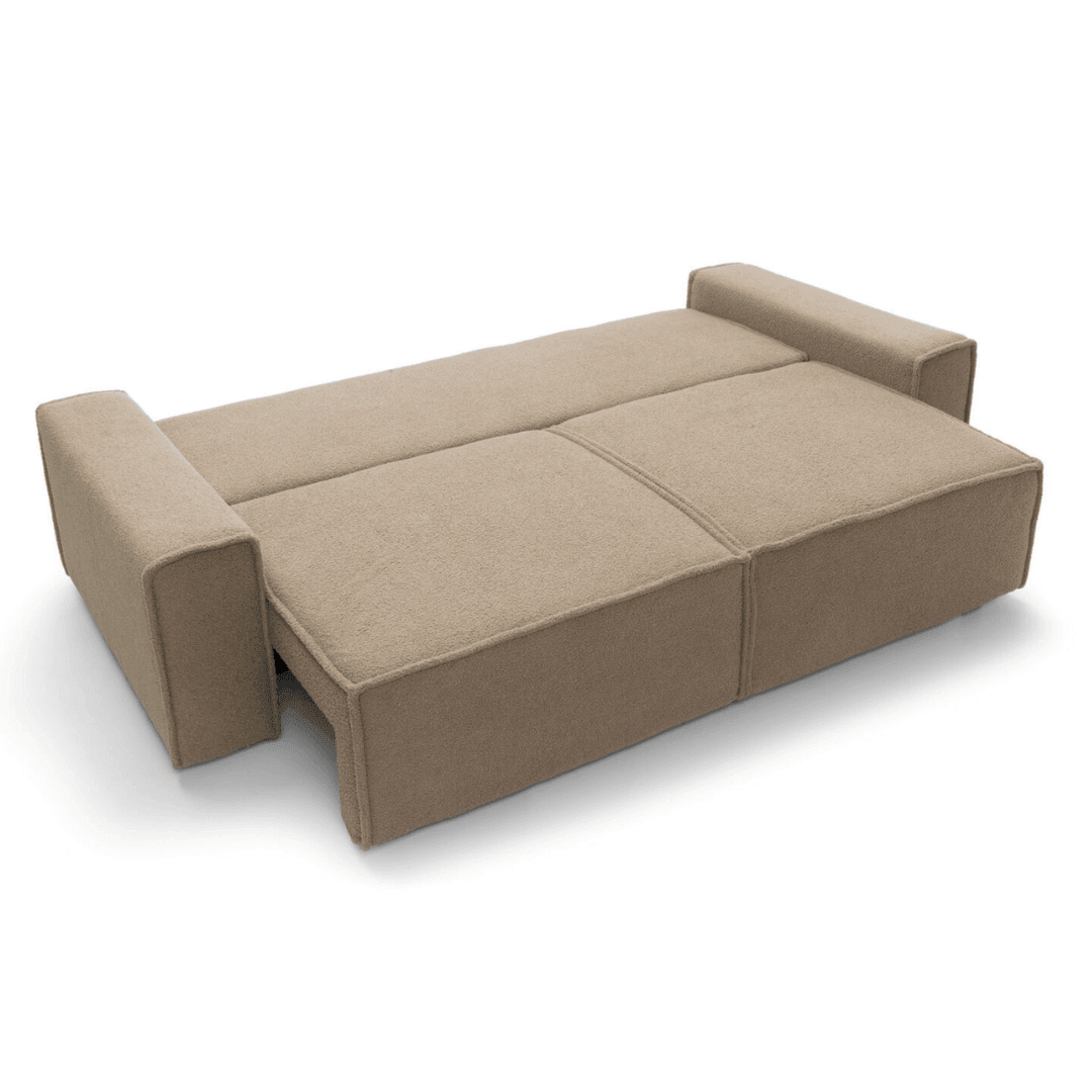 A Domo kanapé egy olyan bútor, amely tökéletesen illeszkedik a minimalista vagy klasszikus nappalik belsejébe is. Egyszerű formájú széles karfáival és divatos buklé szövetével egy csipetnyi eleganciát és harmóniát visz minden otthonba. A nagy, 160×200 cm-es fekvőfelület és a kihajtható DL-mechanizmus révén a kanapé helyettesít egy ágyat. A mély és kényelmes ülések profilos hullámrugóval és rendkívül rugalmas habszivaccsal vannak töltve, melyek garantálják a kényelmes pihenést.