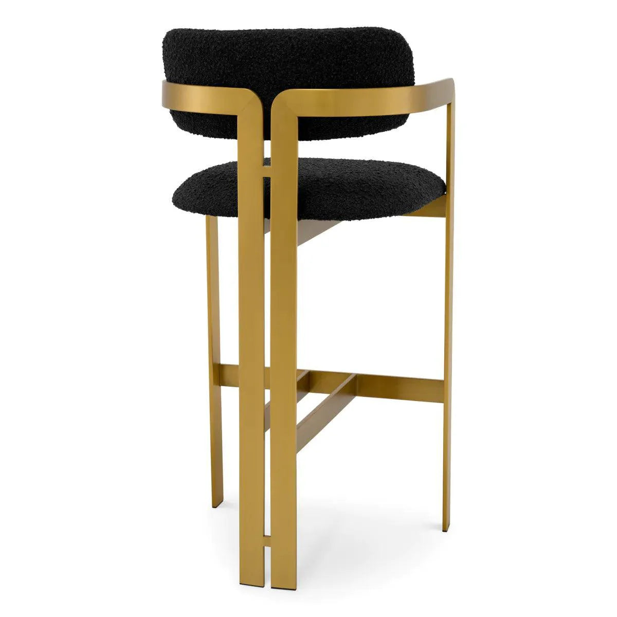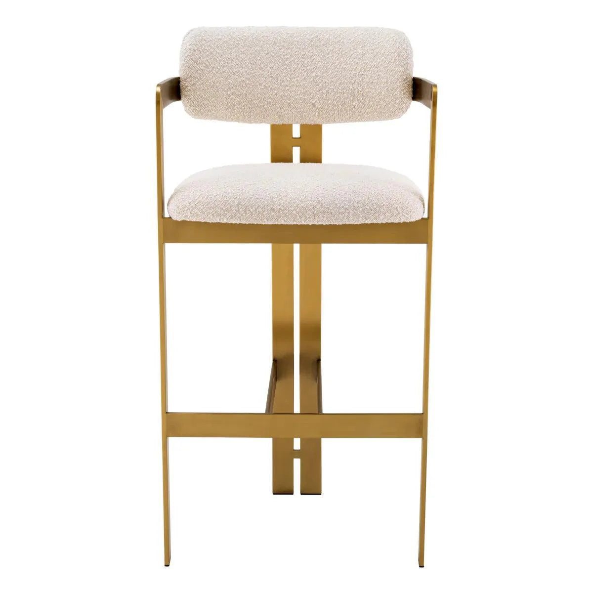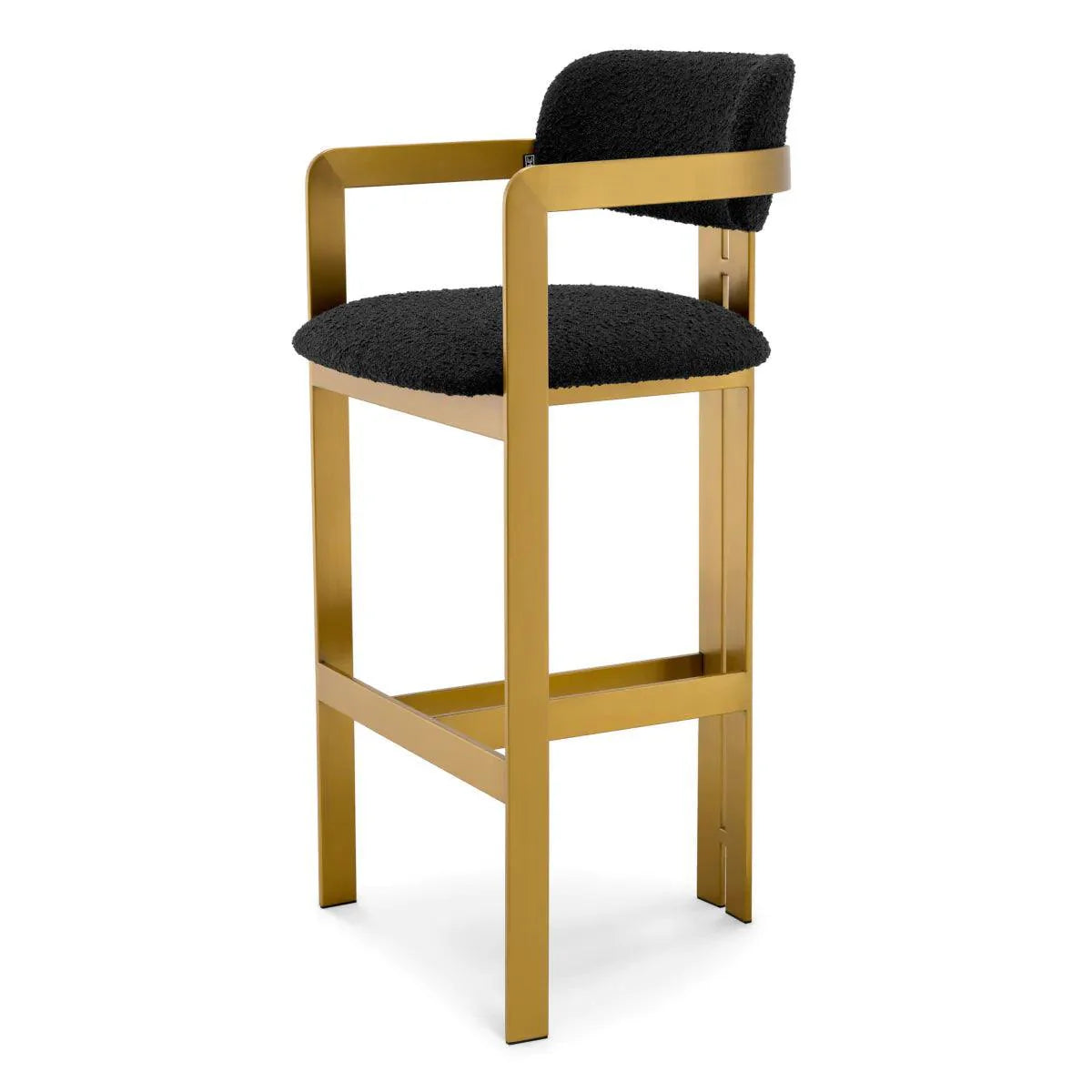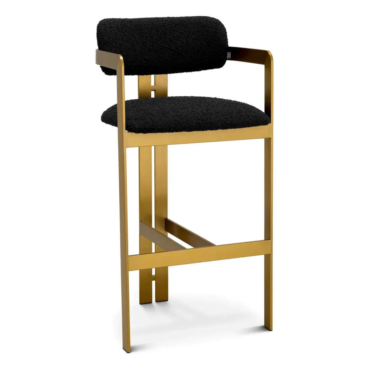 A hívogató és a retro dizájnnal kifinomult Donato bárszék egy csipetnyi vintage stílust kölcsönöz minden térnek. A geometrikus szálcsiszolt sárgaréz kerettel, kör alakú üléssel és ívelt háttámlával, bouclé kárpittal, ez a bárszék a kényelmet és a funkcionalitást párosítja.
