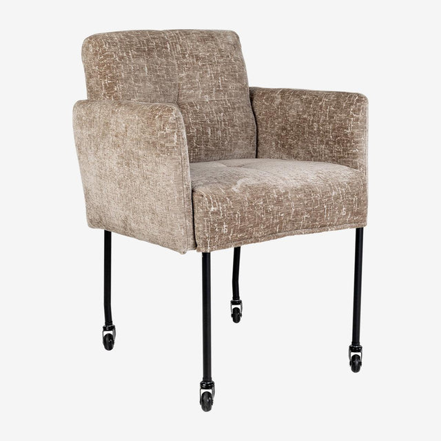 Az egyedi gyártásra készülő Dox szék egy elegáns és praktikus bútordarab, amely fotel szerű kialakítással, és kerekekkel rendelkezik. Hatalmas szín-, és anyag választékának köszönhetően könnyedén alakíthatod saját igényeid szerint. Fa vázzal, és vékony fém lábakkal rendelkezik, melyek a tartósságot, és a stabilitást, míg a többrétegű szivacsok a kényelmes használatot biztosítják. A képen látható Dox modell Island 124 szövettel van kárpitozva.