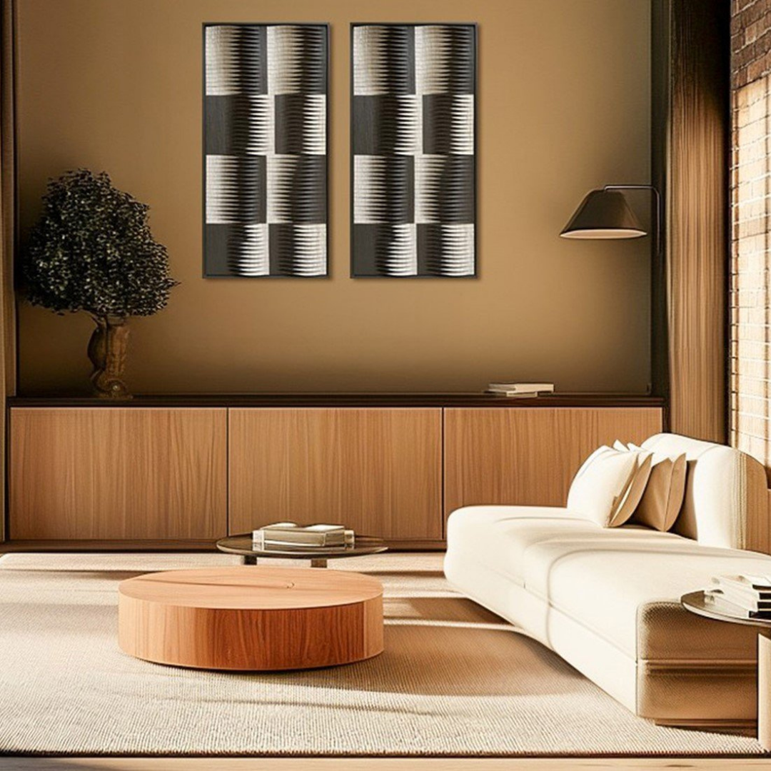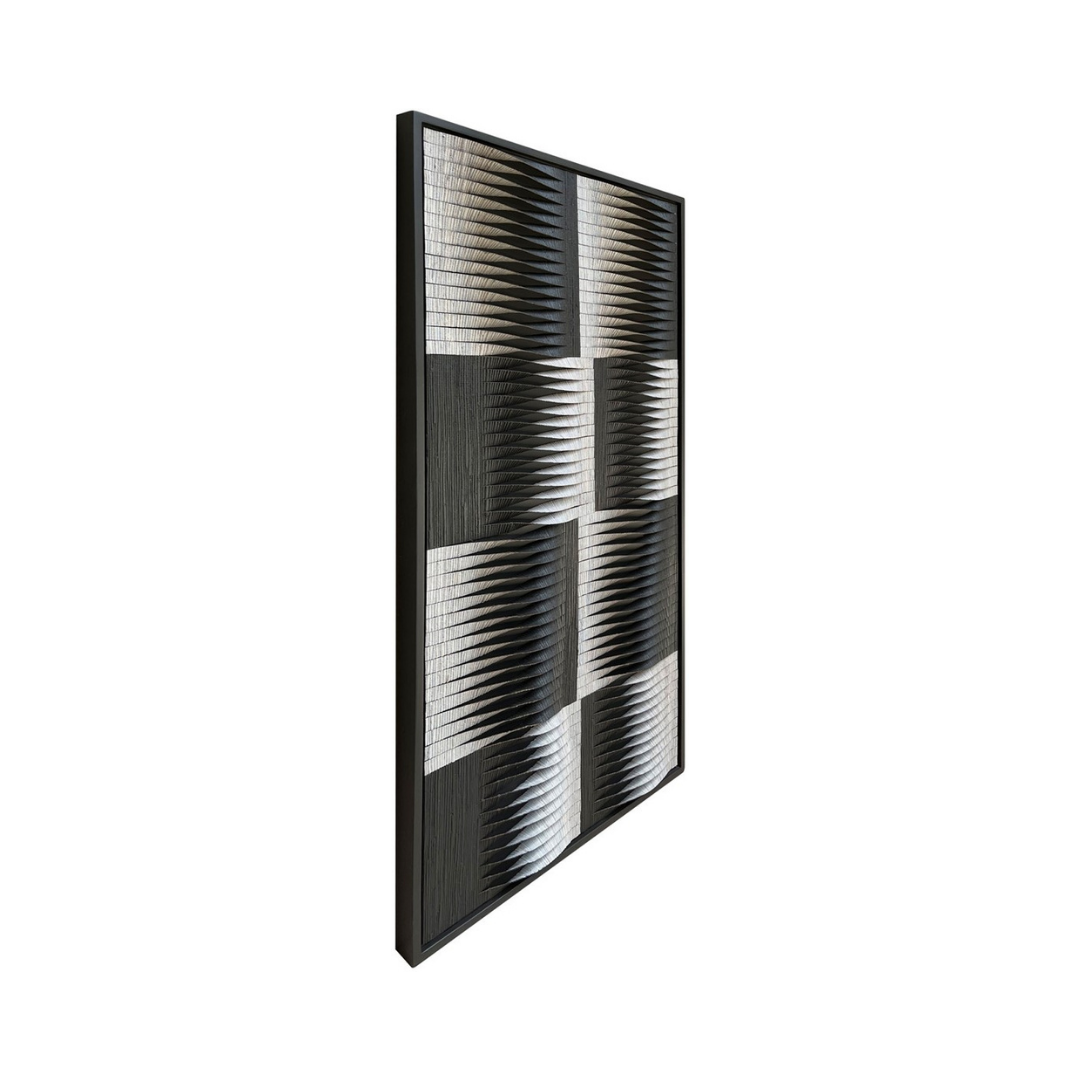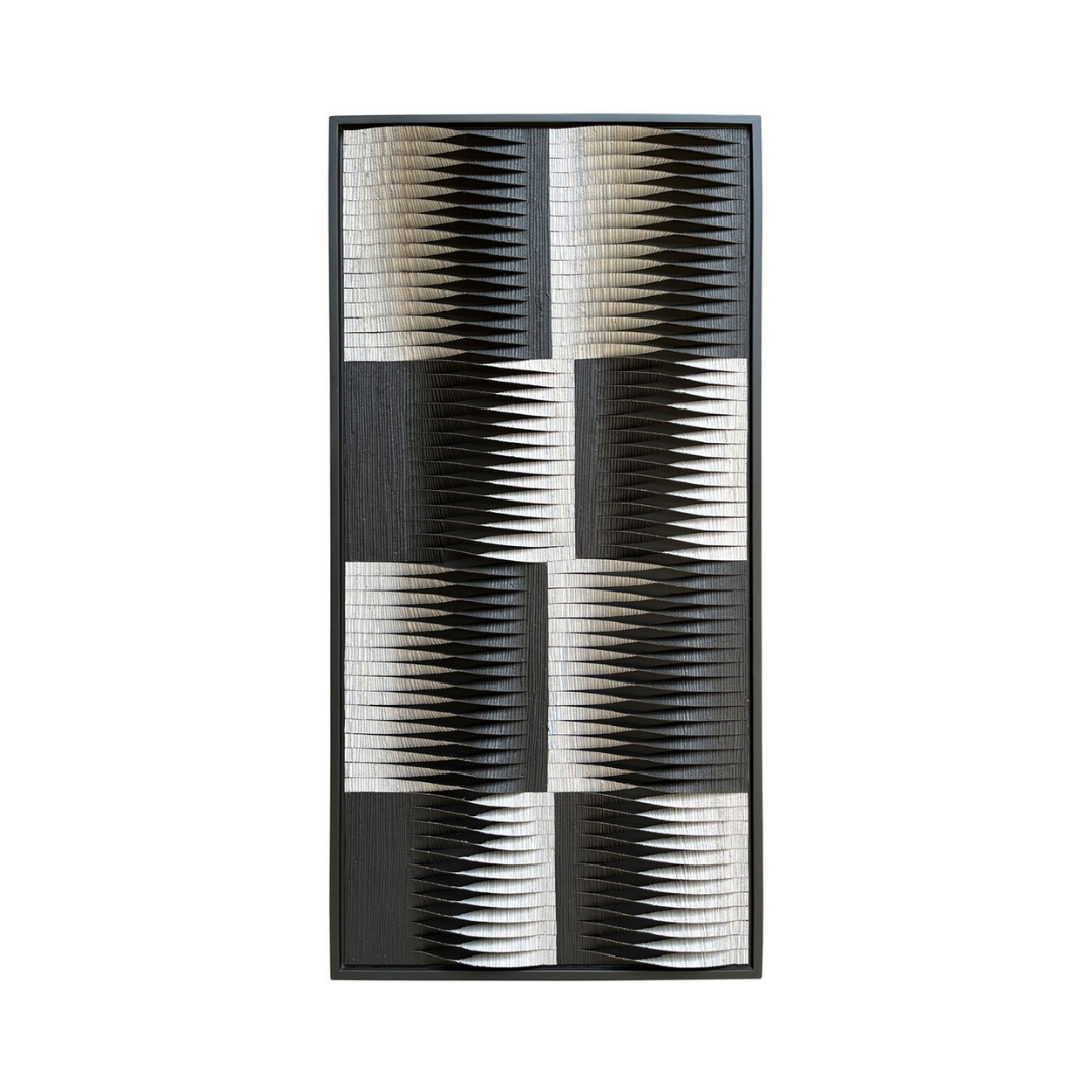 Az Elin fali dekoráció egy modern megjelenésű termék, amely vizuális játékának köszönhetően garantáltan magára vonzza a tekinteteket. A fehér, és fekete szín kombinációja trendi hatást kölcsönöz, míg a sungkai fa anyaga, és 3 dimenziós mintázata lenyűgőző látványt eredményez. A 60x120 cm-es Elin fali dekoráció vékony, fekete kerettel rendelkezik.