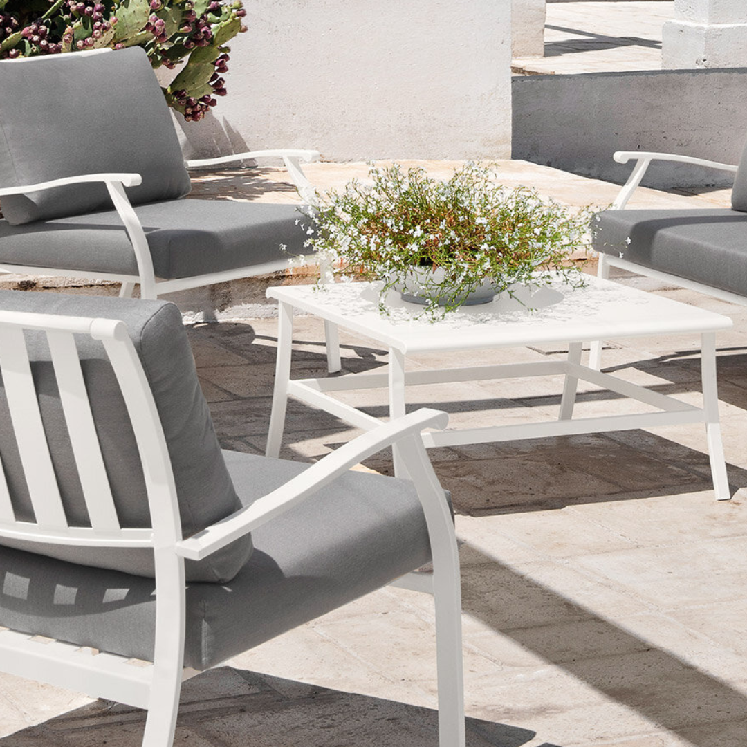Adj személyre szabott kényelmet kültéri tereidhez a testre szabható Elisir kerti dohányzóasztallal, amely könnyű és modern megjelenéssel rendelkezik. Fémből készített váza 4 árnyalatban választható. A kültéri nyugodt pillanatokhoz készült, ez az asztal tökéletesen párosítható a kollekció többi tagjával, vagy önálló darabként is használható a rugalmas szabadtéri esztétikához. Mérete: 80x80x41 cm.