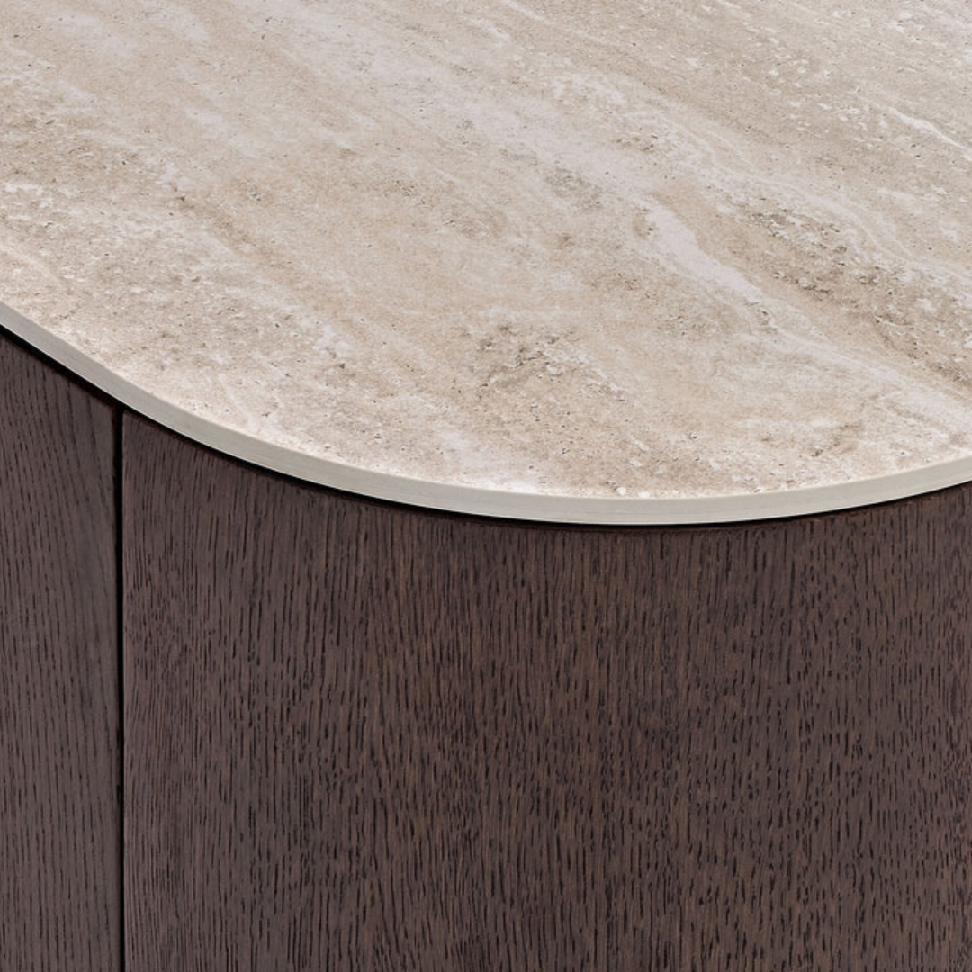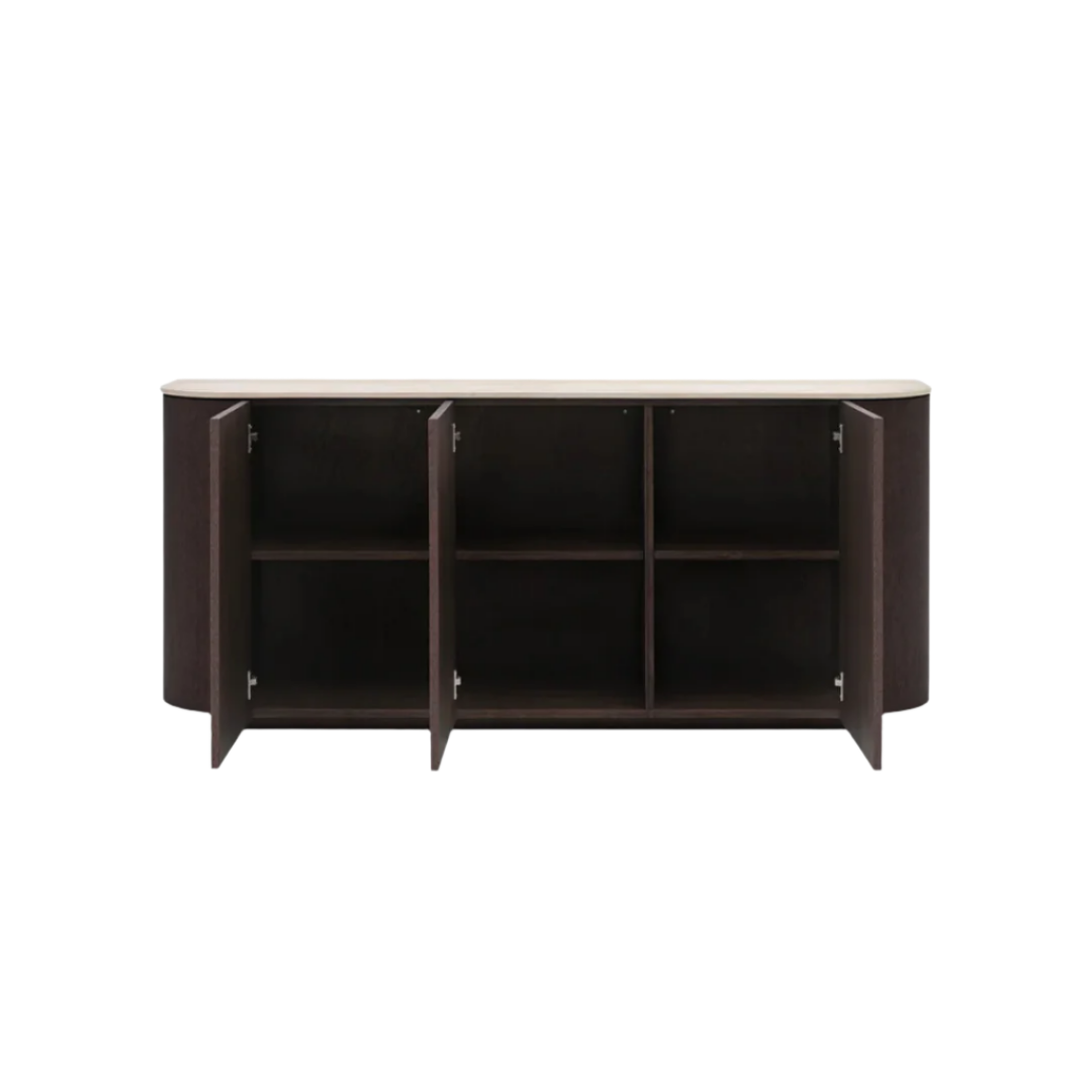 Az Eularia kabinet a dizájnt, a funkcionalitást és a prémium anyagokat ötvözi, így a modern belső terek elegáns darabja lehet. Lekerekített formája, kerámia lapja, és sötétbarna felülete kifinomult egységet alkot, amely a három ajtajával, és a benne található 3 polccal bőséges tárolóhelyet biztosít.