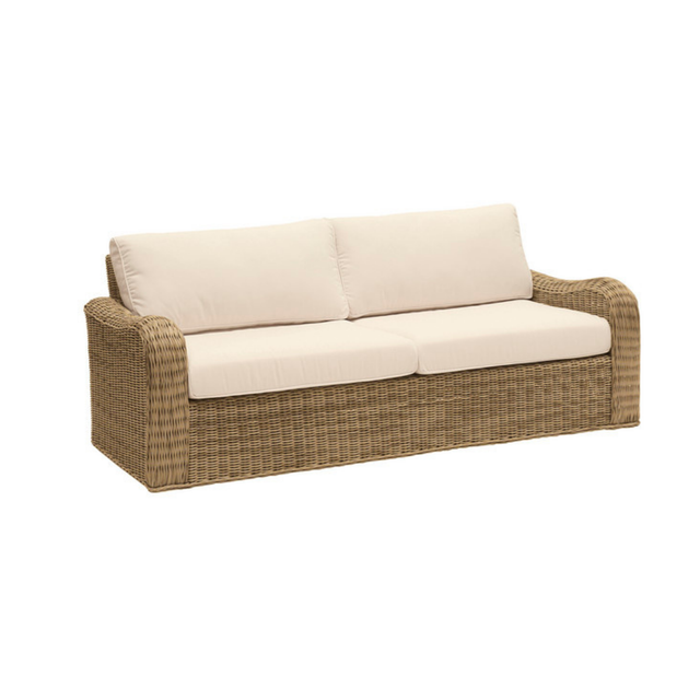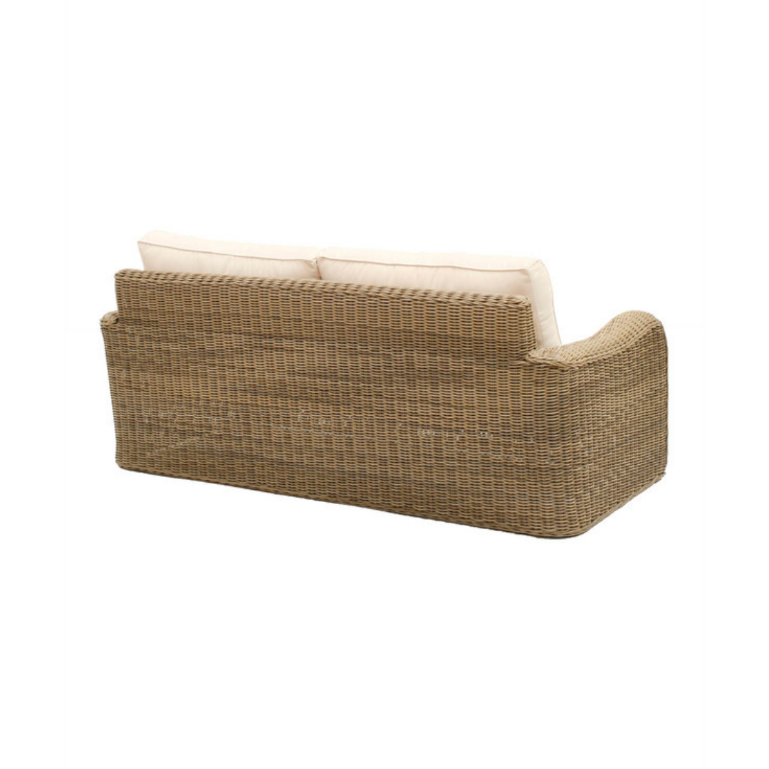 A Ferdinand 3 személyes kerti kanapé egy modern megjelenésű bútordarab, amely a szintetikus rattan anyaga miatt tartós, és időjárásálló. Kényelméről a vastag, bézs színű párnák, és a széles kialakítás gondoskodik, amely hosszantartó használat esetén is komfortos marad. A Ferdinand 2 személyes kanapé, és fotel változatban is elérhető.