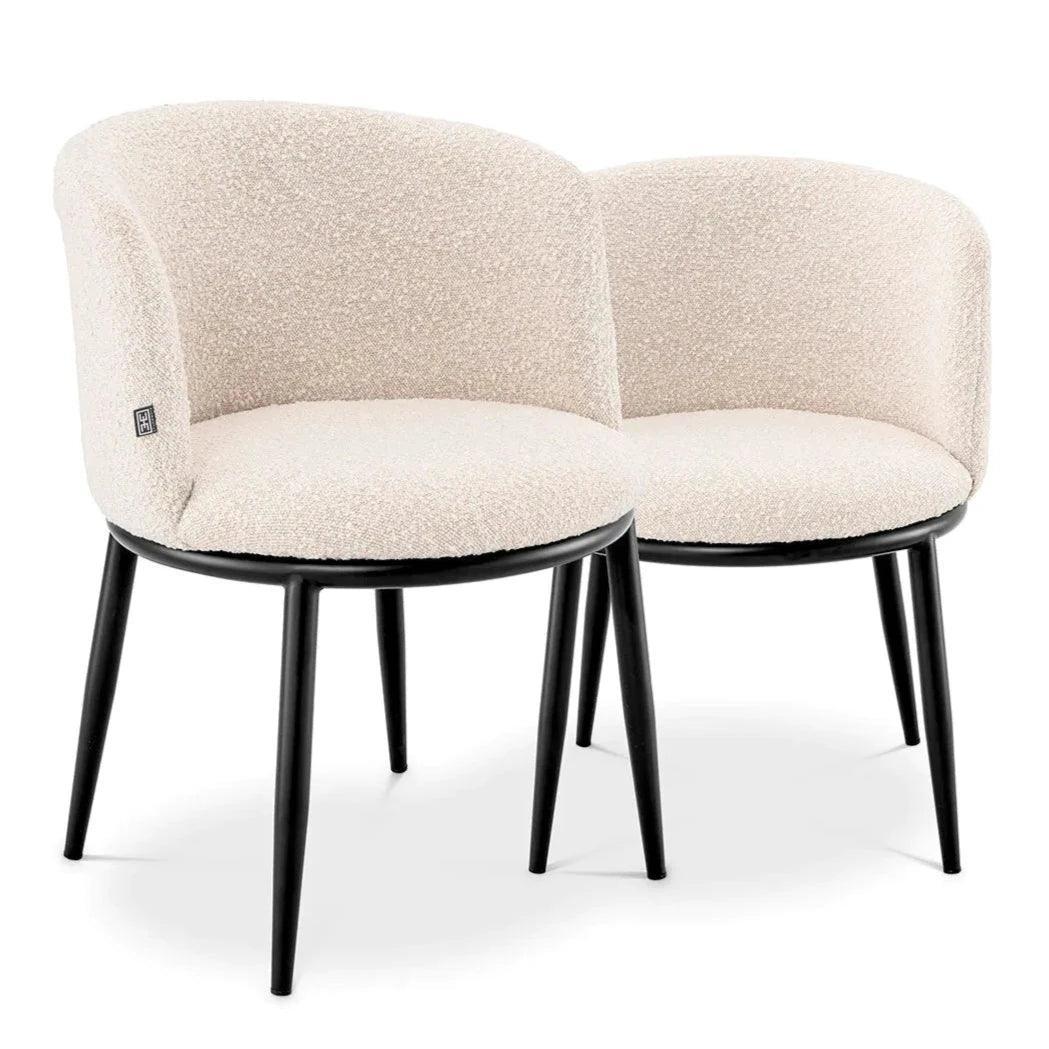 Varázsolj vintage bájt étkeződbe vagy konyhádba ezzel a vonzó 2 Filmore étkezőszékből álló készlettel. A fekete, elkeskenyedő lábakkal ellátott kereteken kerek ülés található, hajlított háttámlával, buklé kárpittal. Kétféle színben kapható, amelyek akár külön-külön vagy kombinálva is megállják a helyüket.