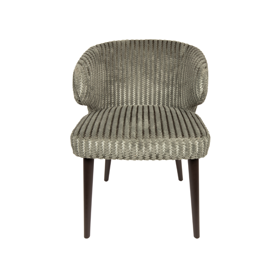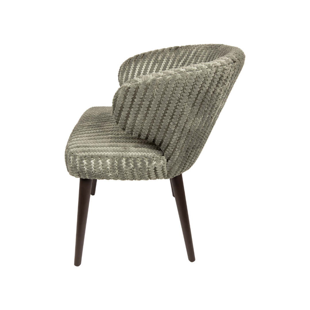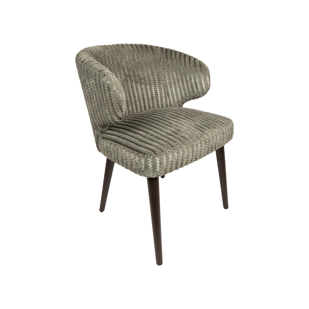 A Fiori szék egy modern megjelenésű bútordarab, amely világosbarna, világoszöld, és bézs színekben érhető el, így könnyedén megtalálhatod a számodra legmegfelelőbbet. A vastag párnázat, a finom tapintású, bordázott bársonyvelúr kárpitozás, és a karfákban végződő háttámla kényelmes használatot nyújt, miközben a sötétbarna fa lábak stabil, és tartós alapot biztosítanak.