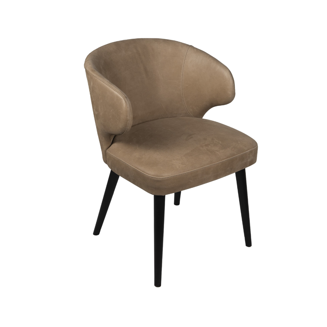 A Fiori szék egy modern megjelenésű bútordarab, amely világosbarna és sötétszürke színekben érhető el, így garantáltan megtalálhatod a számodra legmegfelelőbbet. A vastag párnázat, a finom bőr kárpitozás, és a karfákban végződő háttámla kényelmes használatot nyújt, miközben a fekete fa lábak stabil, és tartós alapot biztosítanak.