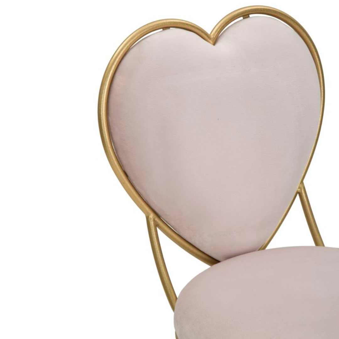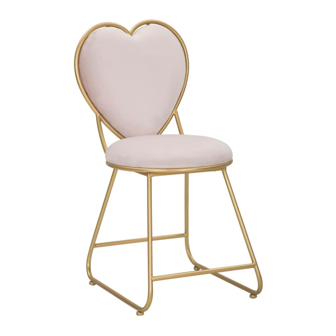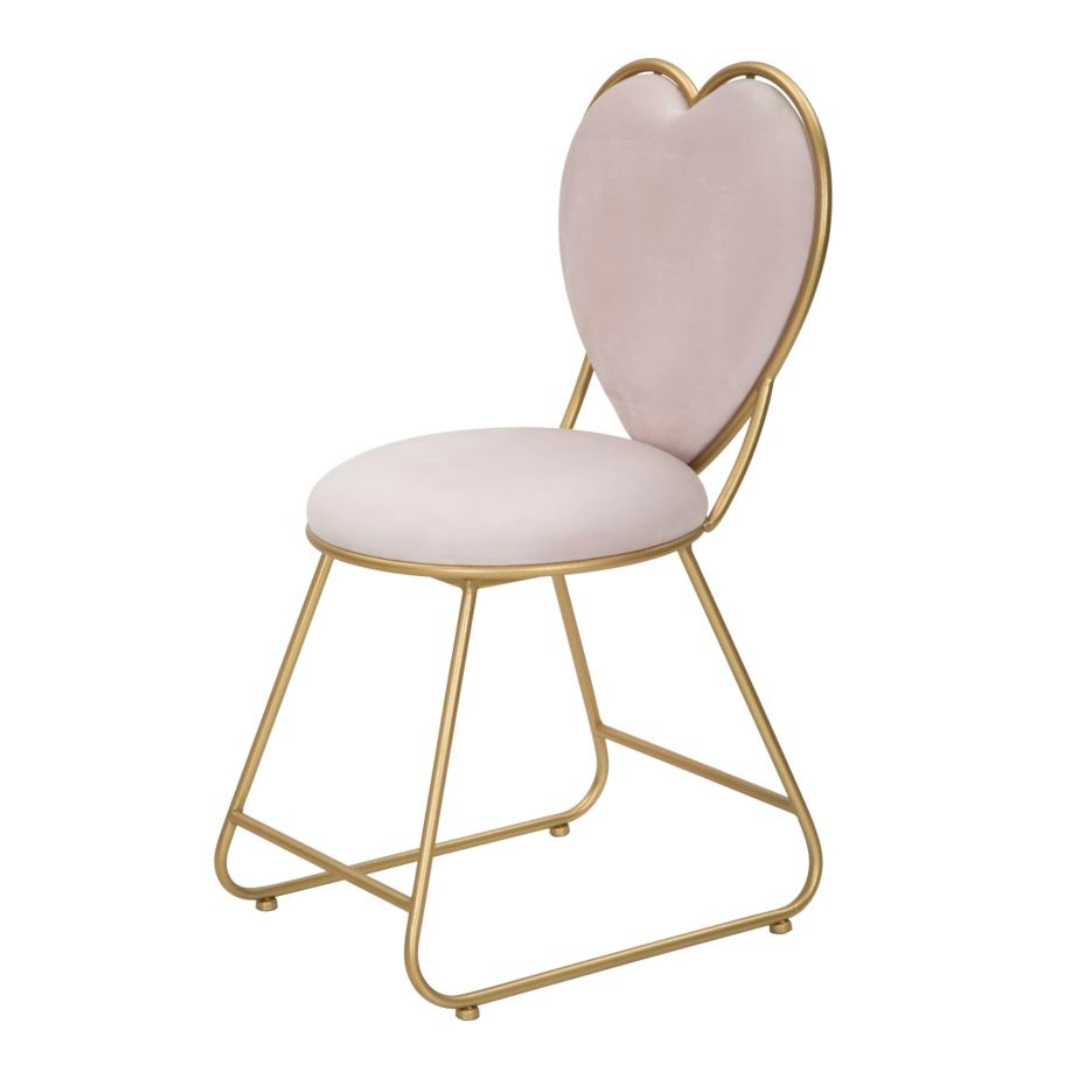 A Heart egy romantikus stílusban megtervezett szék, ami kényelmes ülőfelülettel rendelkezik. Bársonyból készült, rózsaszín színű huzata időtállóan elegáns és invitáló. Kiválóan megállja a helyét bájos megjelenésével a romantikus és vintage stílusban berendezett terekben. Arany színű fém lábai tökéletesen kiegészítik kifinomult sziluettjét.